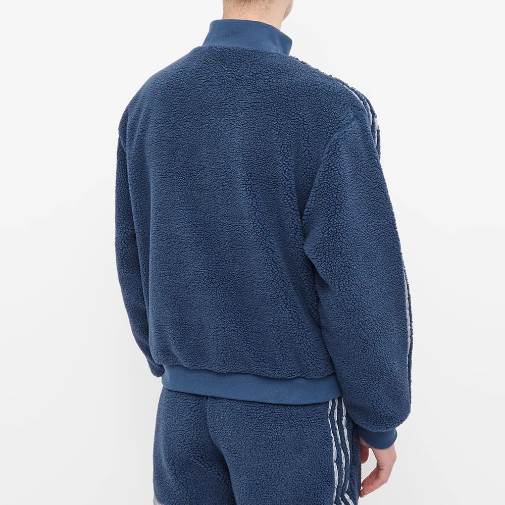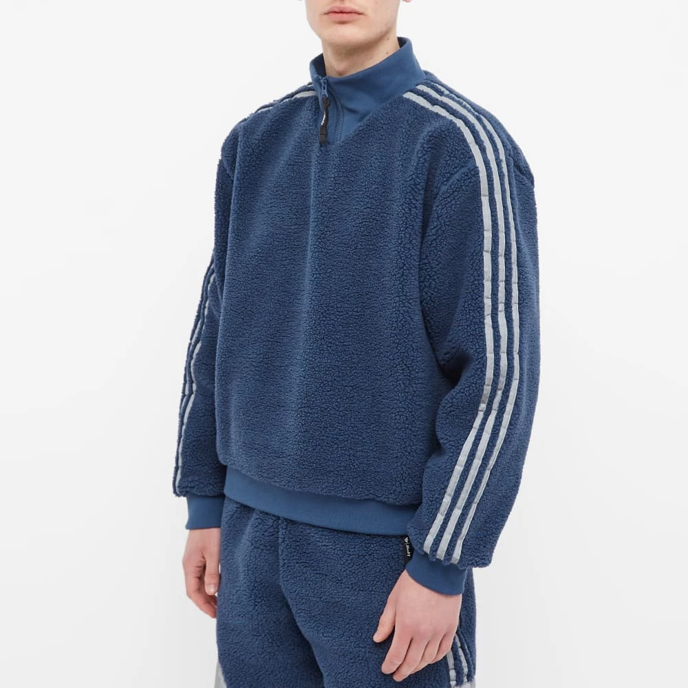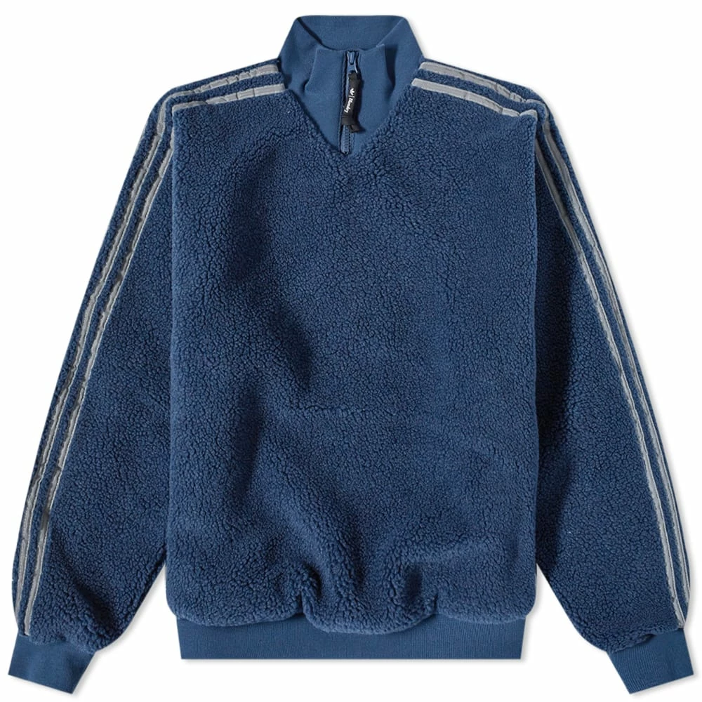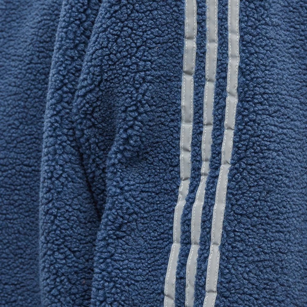 adidas teams up with British designer and pro team rider Blondey McCoy for a capsule of apparel and footwear. Taking inspiration from the skate enthusiasts brand Thames along with the German sportswear brand’s archival styles, this blue sherpa fleece is cut to a retro fit and detailed with tonal 3-Stripes down each side sleeve.