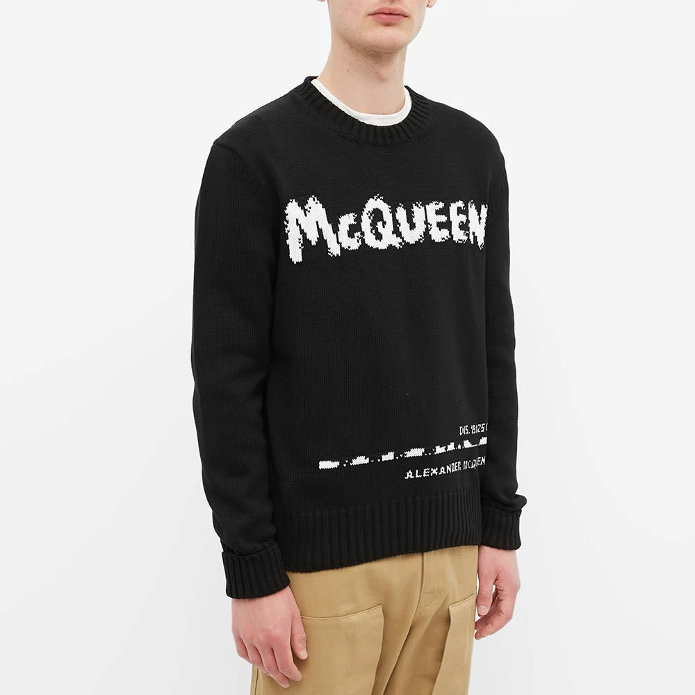 Alexander McQueen goes bold with knitwear this season, adding contrasting branding to the front of this black sweater. It’s woven in Italy from soft cotton for all-day comfort, then finished with smaller script just above the hem.