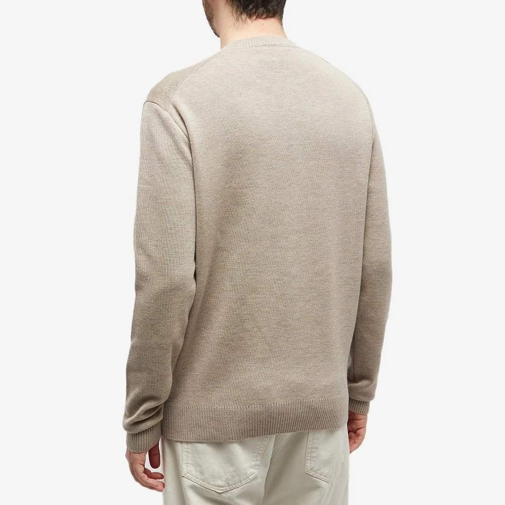 You’ll find the ‘A’ – from AMI founder Alexandre Mattiussi’s initial – crowned with a heart at the chest of this beige crew knit from the Parisian label. Crafted from pure merino wool, its cut to a classic slim fit and features snug ribbed trims.
