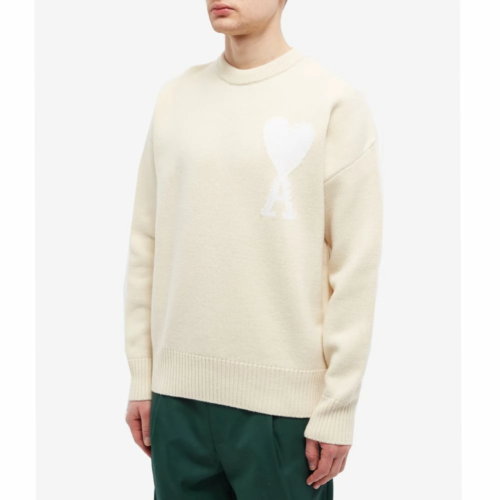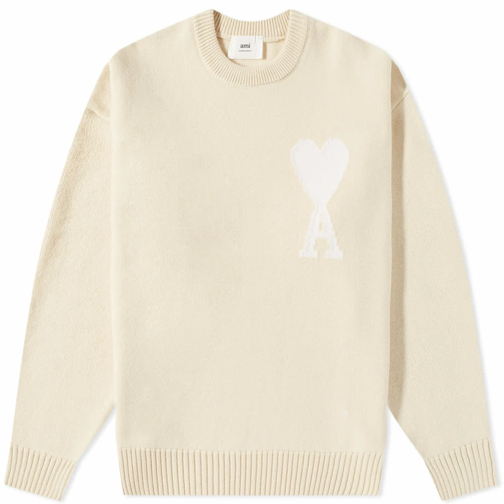 AMI’s signature ‘Ami de Cœur’ logo sits proudly in white at the heart of this vanilla crew knit – an emblem that symbolises friendship, love and joy. It’s woven in Portugal from soft pure wool, championing the label’s quality fabrication and craftsmanship.