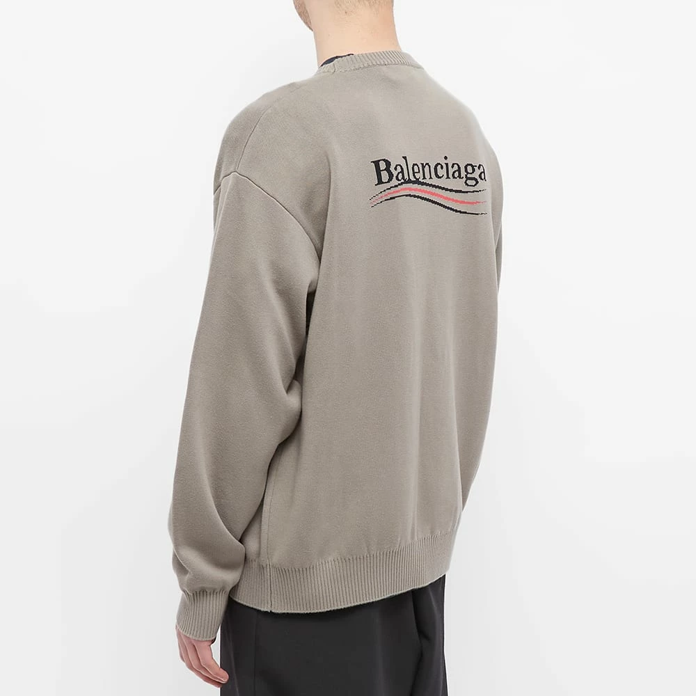 This grey crew from Balenciaga is a premium knitwear staple. Woven from a comfortable cotton blend, it’s cut to a relaxed fit with dropped shoulders and features the brand’s logo classically embroidered at the chest.