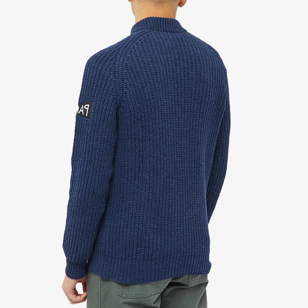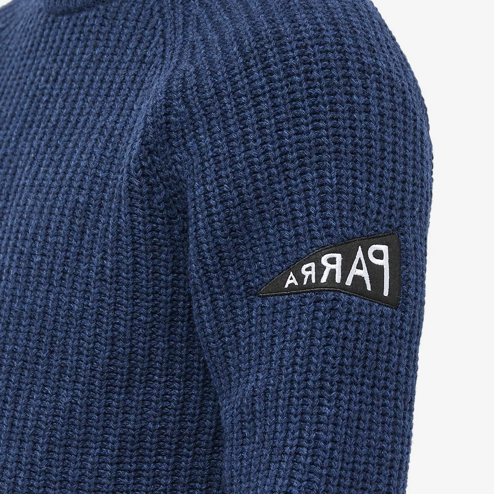 By Parra is the second clothing company by professional skater and designer, Pieter Janssen. The brand is renowned for its bold colour palette and silk screen prints and use of experimental typefaces. The mirrored flag crew knit is the perfect way to finish off your winter outfits. Made from a thick ribbed wool material, this piece features the brand’s logo printed onto a flag, but backwards – keeping with the brand’s artistic style.