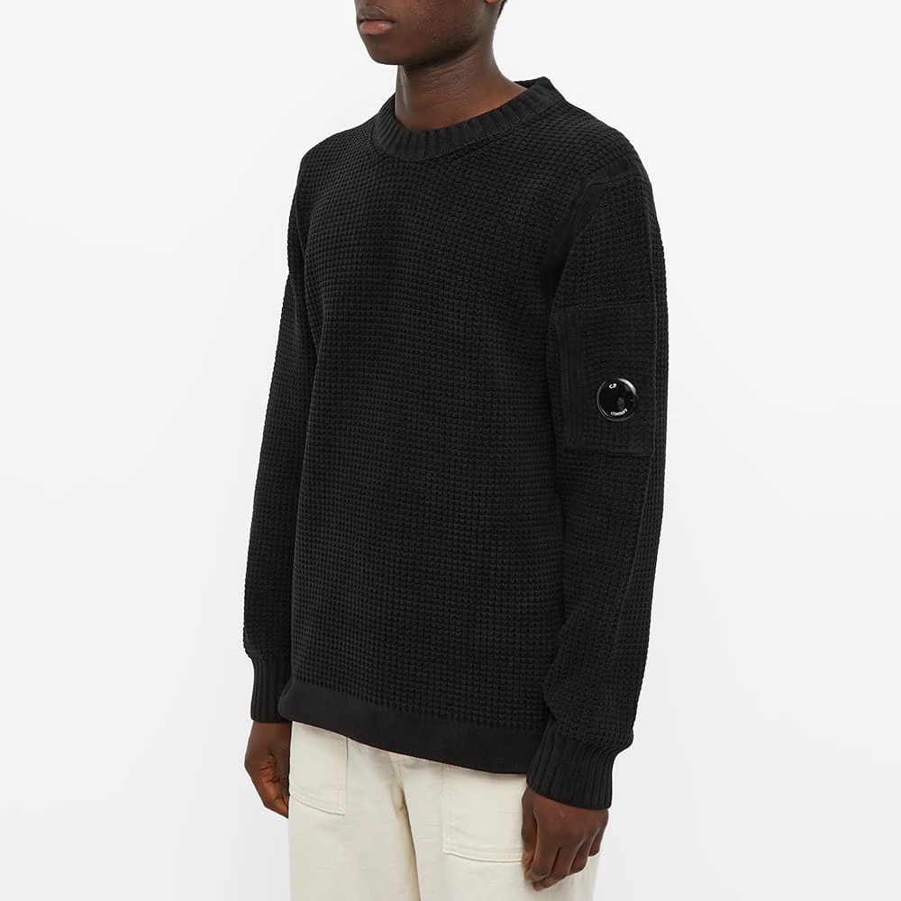 In classic black, this crew neck knit from C.P. Company promises to be your go-to stylish staple. Crafted from pure cotton with a textured finish, it features ribbed trims for a snug fit and is complete with the iconic goggle lens at the arm, of course.