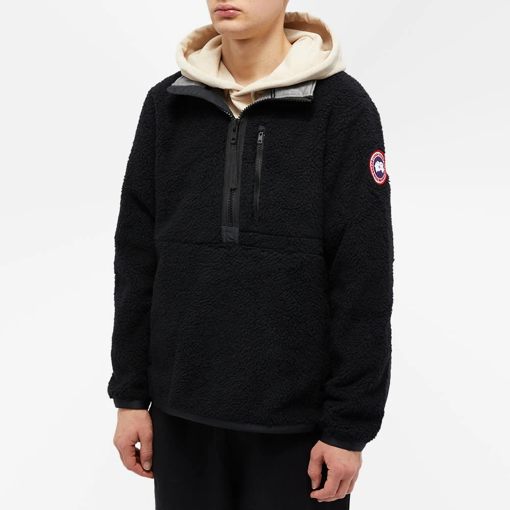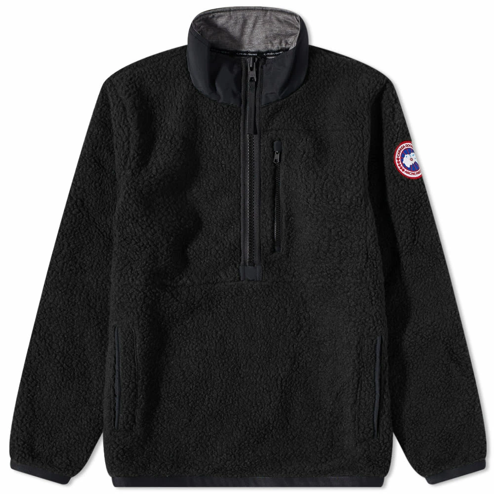 Designed to combat harsh Canadian winters, Canada Goose is constantly reaching new altitudes with its range of clothing. Made with recycled materials this black high-pile fleece, the Renfrew pullover features a contrasting collar, zip and arm detailing. Complete with a signature logo patch on the sleeve.