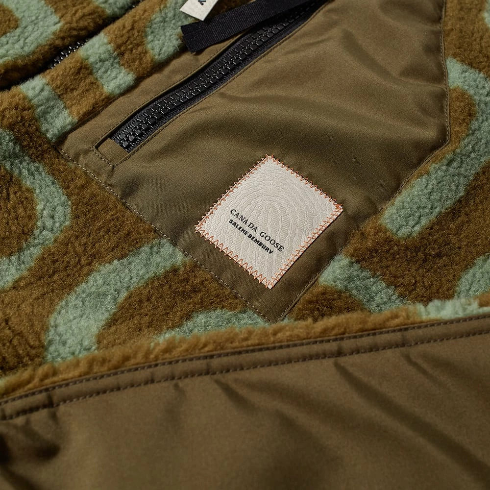 Canada Goose and NBA’s ongoing partnership is influenced this season by Salehe Bembury’s unmatched creative flair, as the three join forces to create this khaki and sage hi-tech patterned fleece.