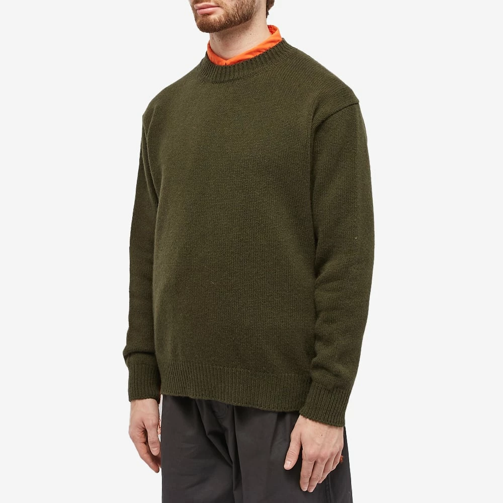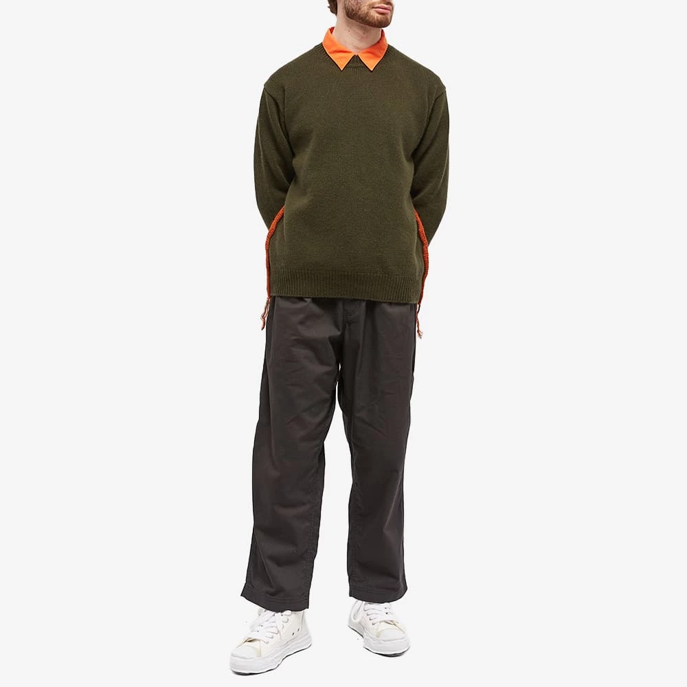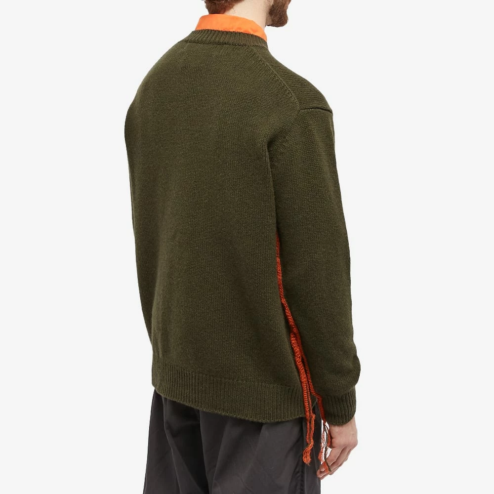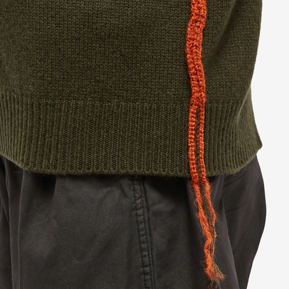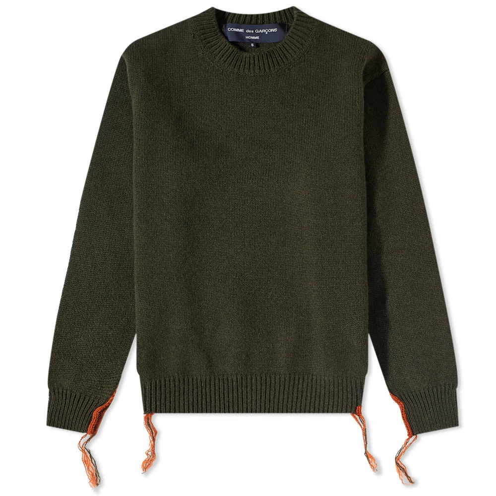 With unorthodox cuts, fabric treatments and hybrid garments Comme des Garçons Homme Plus reconceptualises traditional menswear. Punctuated with holes throughout, this distressed khaki crew knit channels the brand’s punk inspired collections. Finished with glossy branding on the chest.
