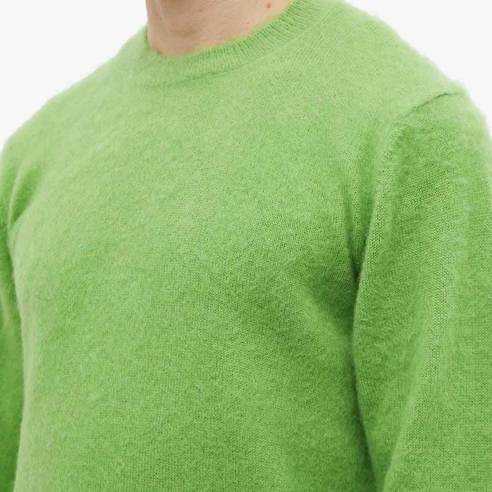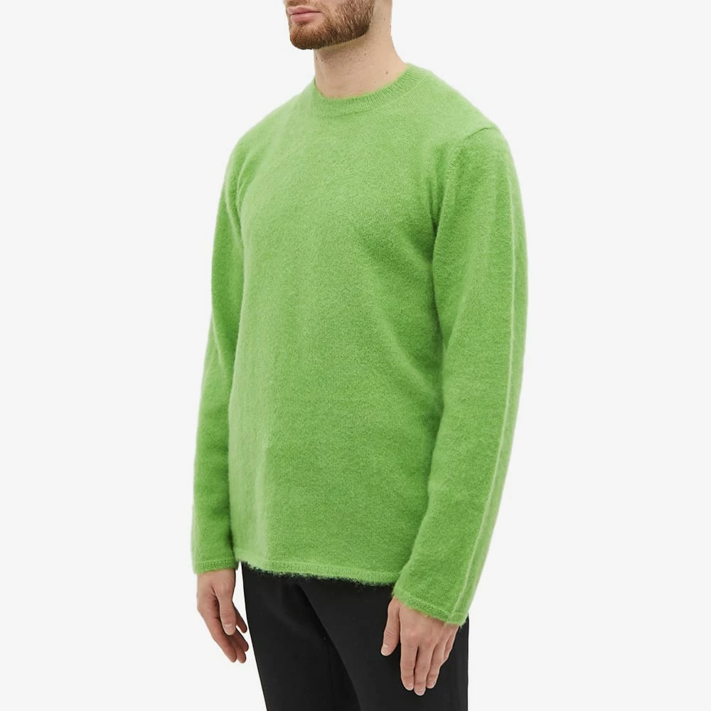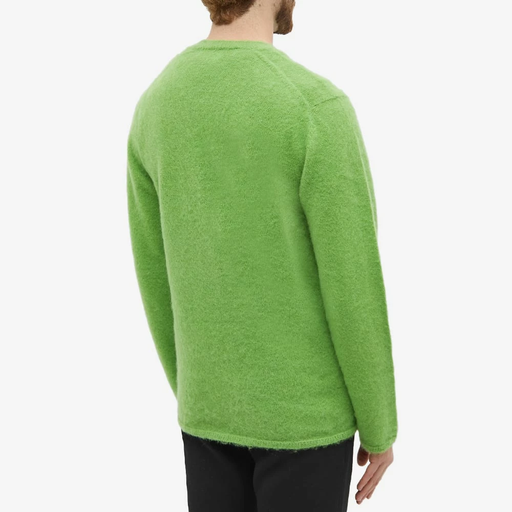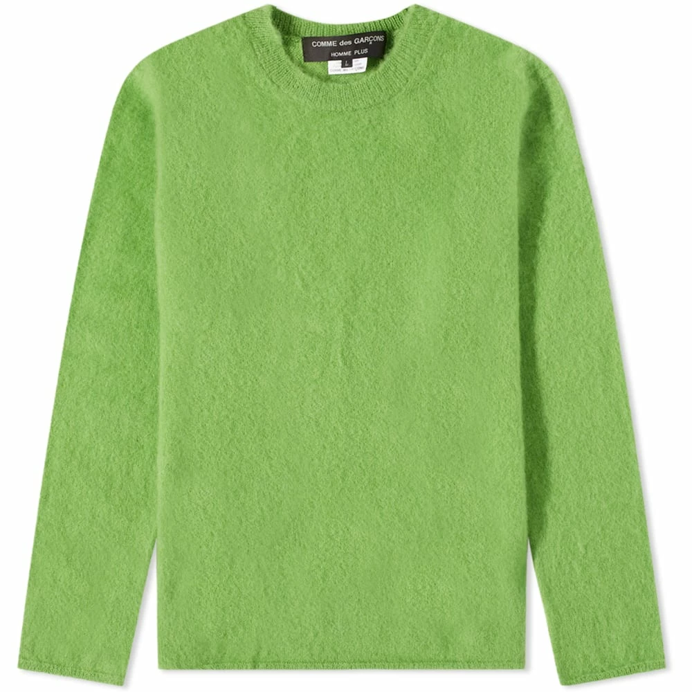 With unorthodox cuts, fabric treatments and hybrid garments Comme des Garçons Homme Plus reconceptualises traditional menswear. Crafted from wool this mohair crew knit features a bold light green colouring.