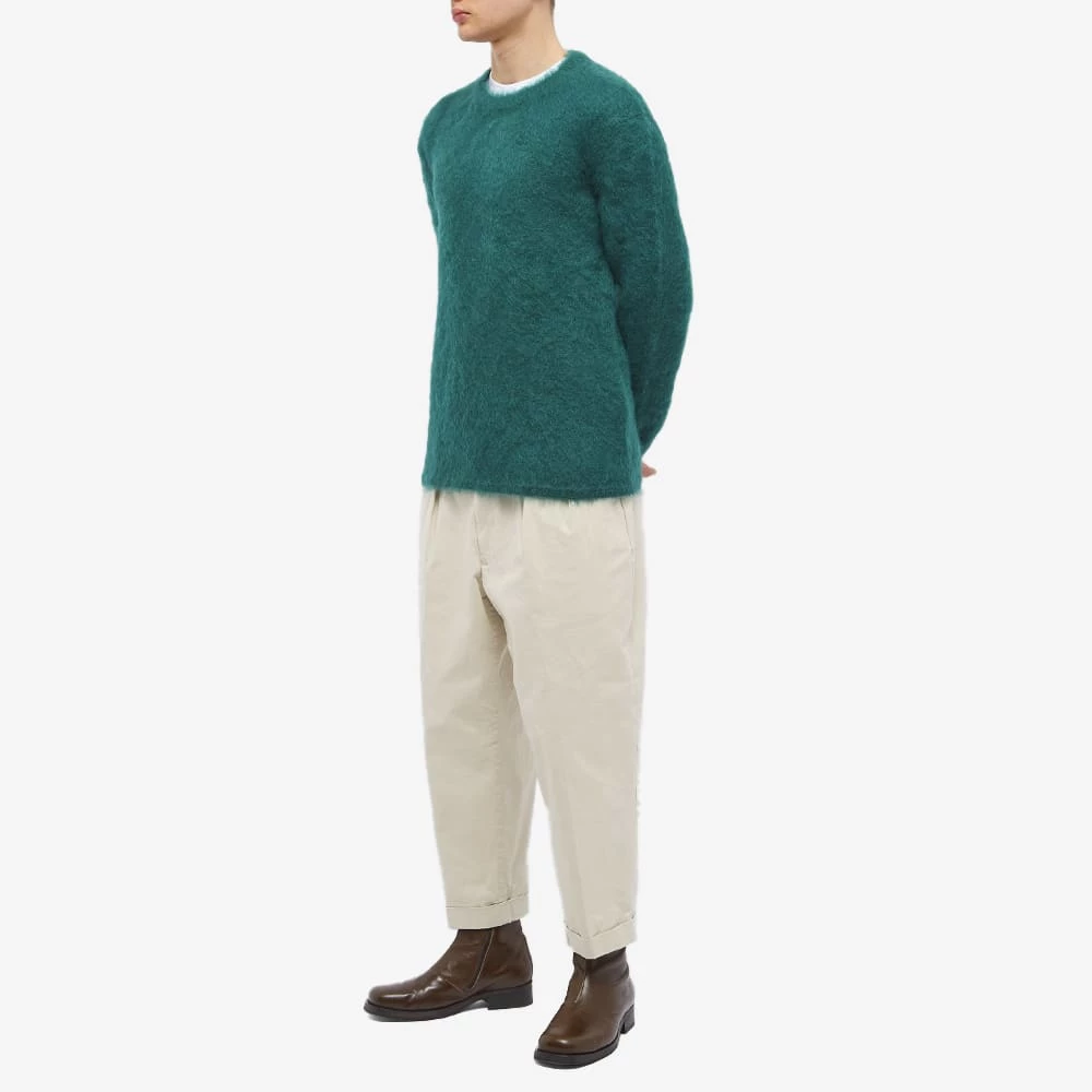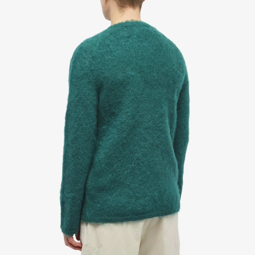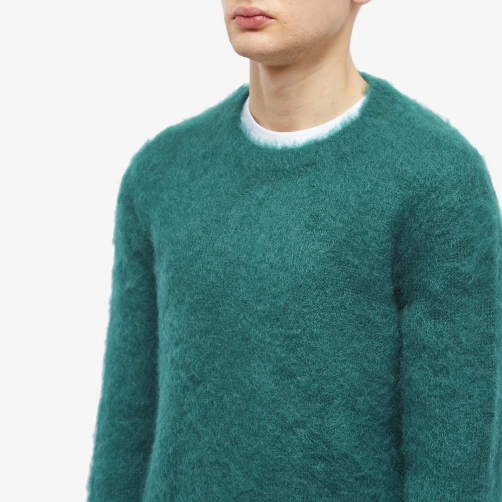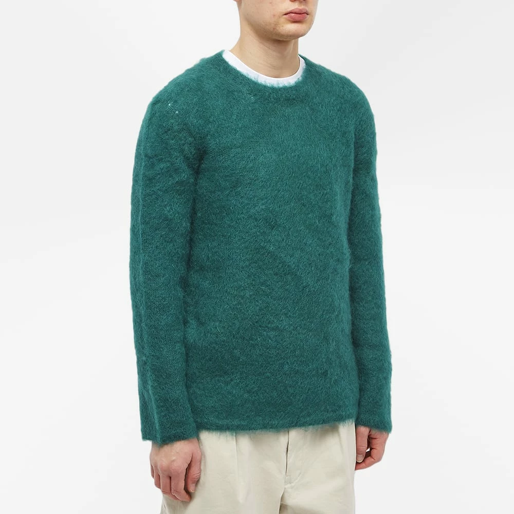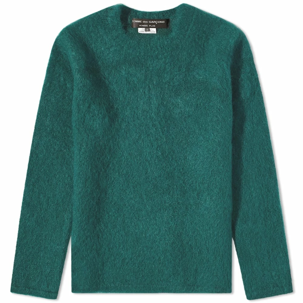 With an emphasis on quality in production and a commitment to vision in the face of trends, Comme des Garçons Homme’s outerwear strikes a form both reliable and cutting-edge. Crafted from a luxurious lightweight wool and mohair blend, this dark green crew knit features a contrast ribbed crewneck.