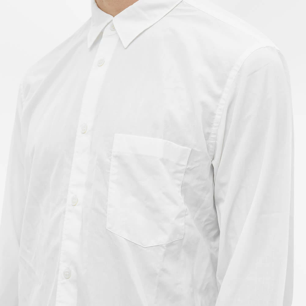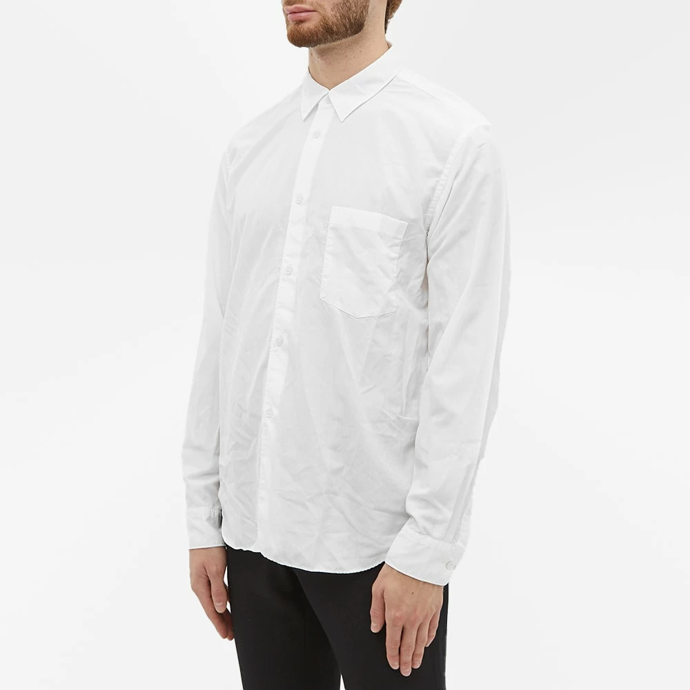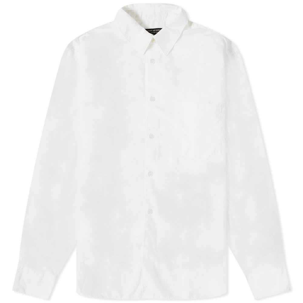 Reconceptualizing traditional menswear tropes of tailoring, Comme des Garçons Homme Plus produces unorthodox cuts, fabric treatments and hybrid garments. With a minimalist design, the white shirt is finished with a chest pocket.