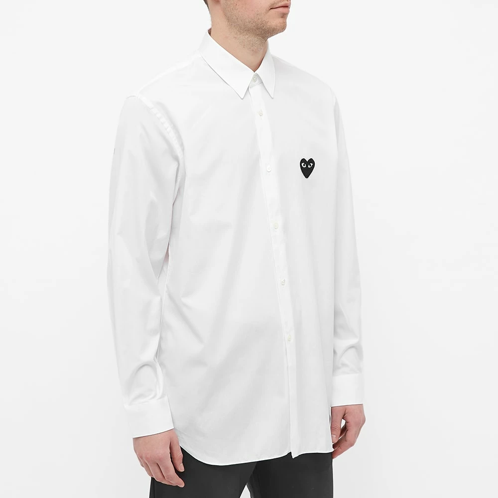 At the chest of this crisp white shirt, Comme des Garçons PLAY’s cute and quirky bug eyed heart is appliquéd to sit directly over the wearer’s own heart. Made in Japan, it’s simply cut from pure cotton to keep you cool and comfortable.