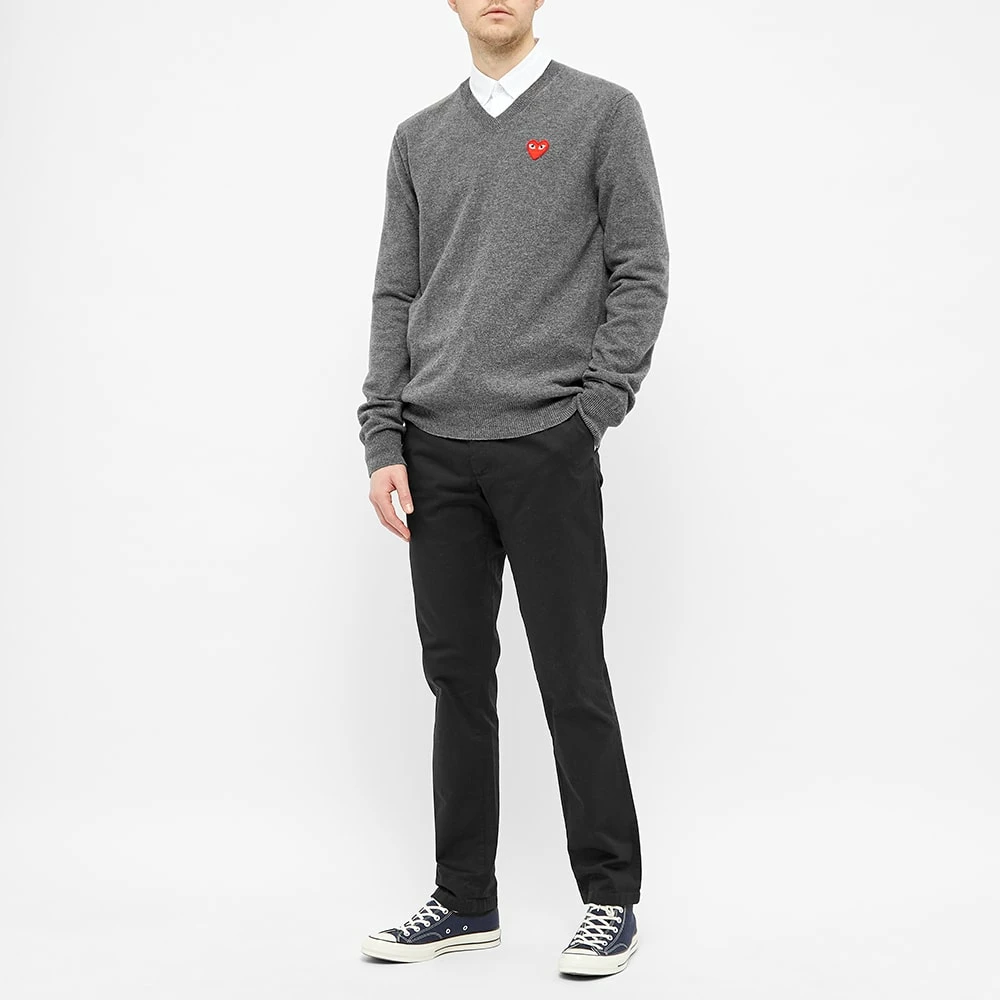 A preppy piece with a side of playful romance, this grey Comme des Garcons PLAY knit is decorated with a red Filip Pagowski logo appliquéd at its chest. A cosy staple for the colder weather, it’s made in Japan and styled with a v-shaped collar.