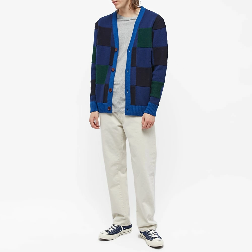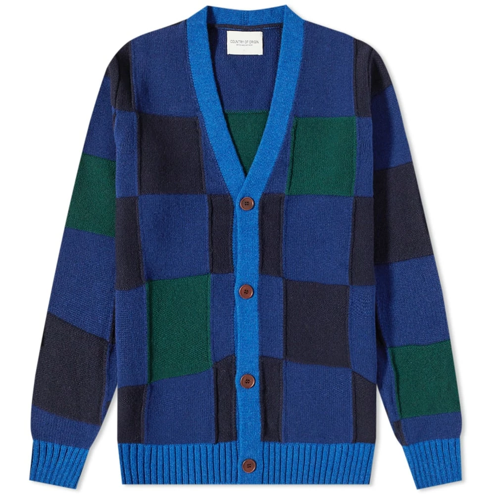 Country Of Origin shows us what the UK has to offer, with premium knitwear woven in the historic town of Wigston. This colourful blue and green checkerboard cardigan is a fun rendition of classic, sure to brighten up the seasons ahead. Knitted from lambswool and hand linked by craftsmen, this has contrast reverse panels creating a textural pattern.