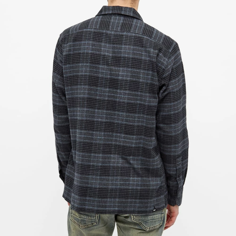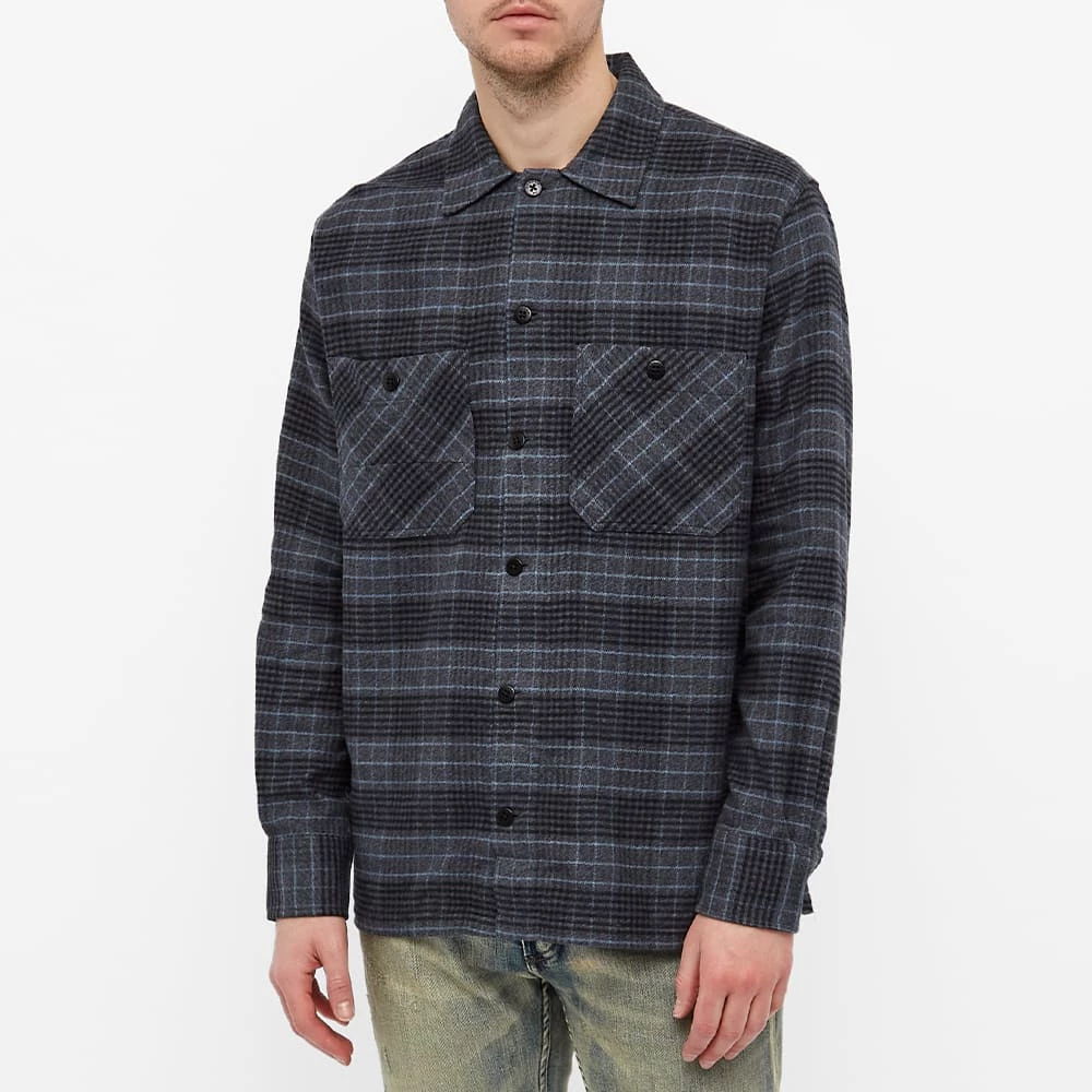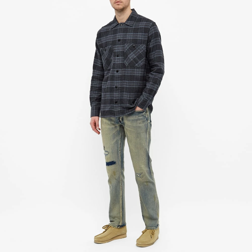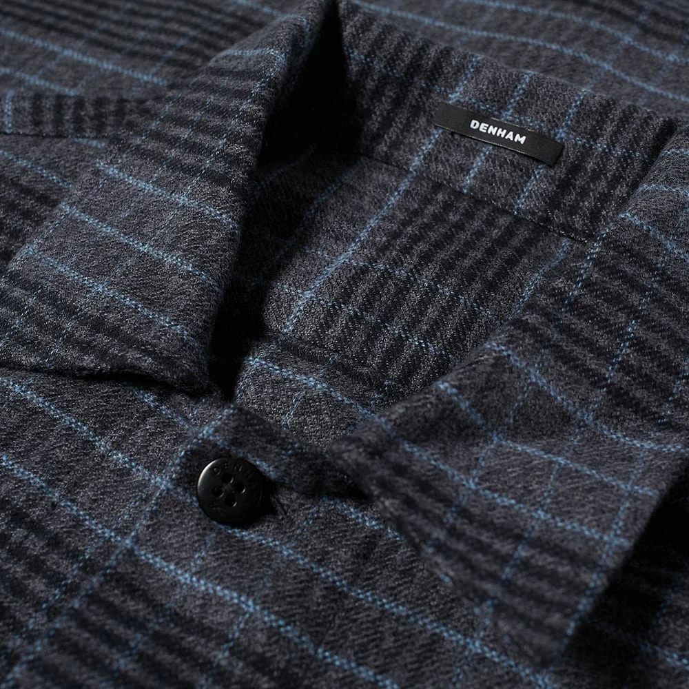 Constructed from brushed cotton twill in a loose fit, DENHAM’s overshirt has a soft and relaxed feel to it. It’s decorated in an indigo check pattern and secures with a sturdy button closure.