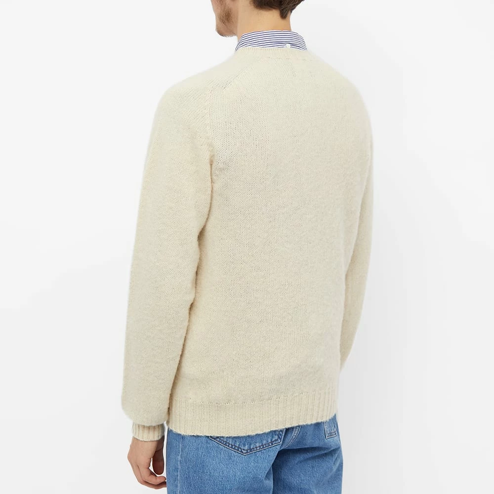 Founded in 1977 and built around the philosophy of ‘relaxed elegance’ Drake’s has an eye for distinctive colour and pattern. This brushed Shetland crew knit features the brand’s keen eye for colours with the bold ecru colour. A crucial element to a man’s traditional wardrobe, this wool jumper is ideal for adding a collegiate charm to any look. Working alongside Scottish Border knitters, the brand ensures this knit to have a shaggy texture.