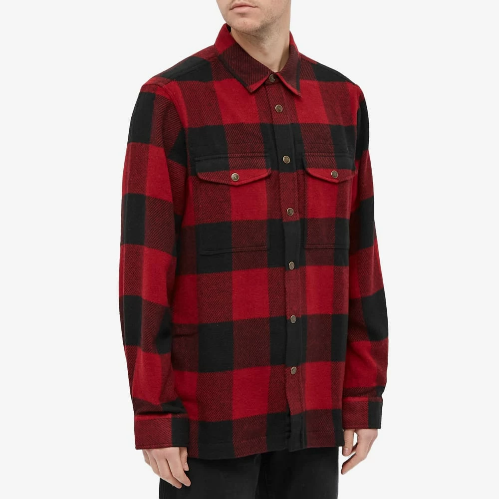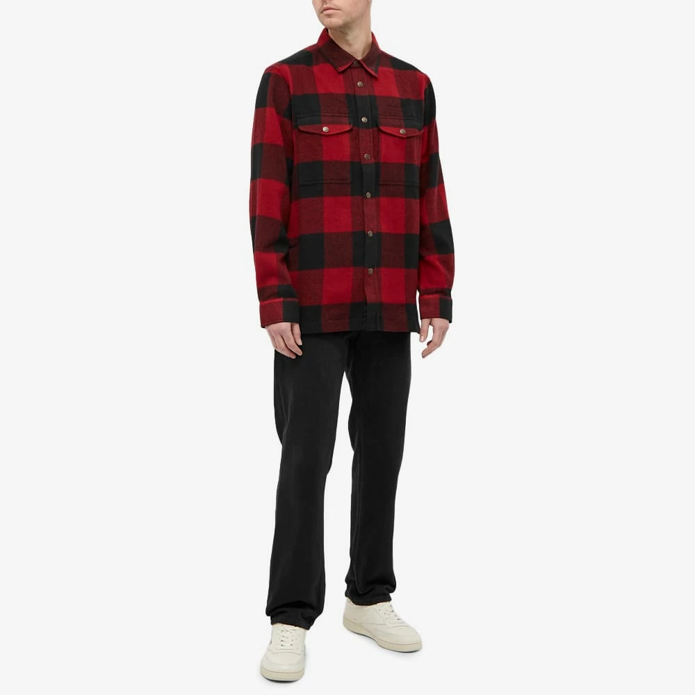 The Canada shirt from Fjällräven comes from the brand’s Värmland series. It’s styled in a classic black and red check with branded metal press studs and the luxe leather Arctic fox patch to complete the look.