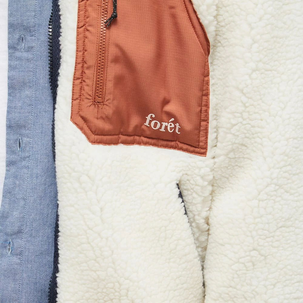 Danish brand forét was founded in 2014, inspired by a love for nature and slow living. The brand’s collections are versatile and timeless, blurring the line between outdoor wear and casual staples, embodied in the Aurora sherpa fleece jacket. This jacket features contrasting pockets in a refined two-toned palette for a simple, contemporary look.