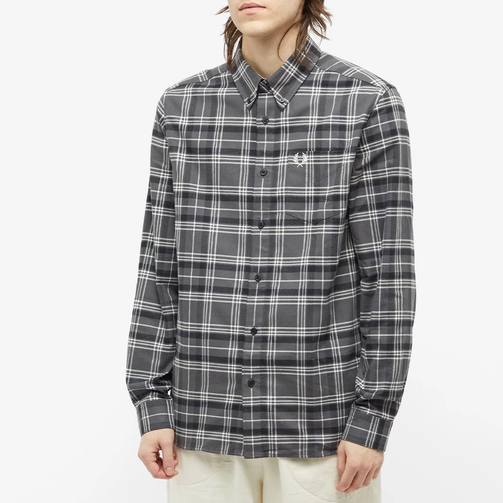 Awarded to Fred Perry by the Wimbledon All England Club after winning three years in a row, the Laurel Wreath is a symbol of success and victory. Now the British label’s brand is embroidered on this shirt. Crafted from brushed cotton with a distinctive tartan pattern, finished with a button down collar.