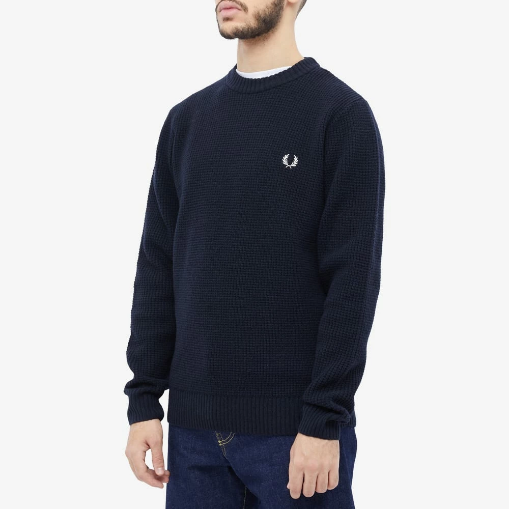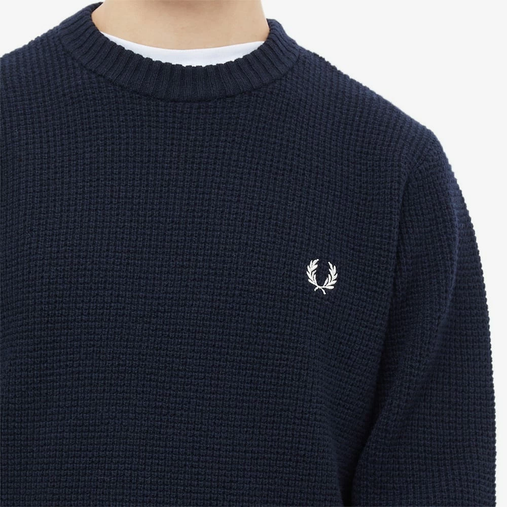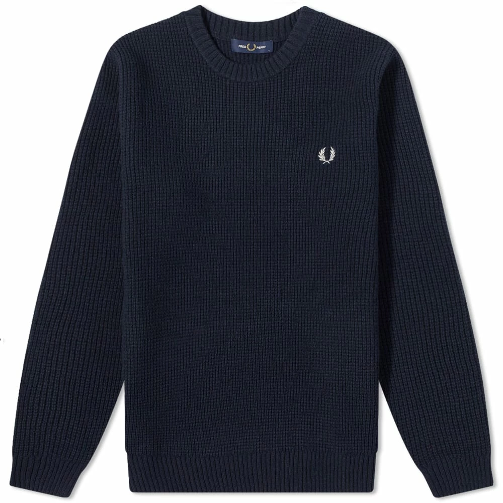 An icon on the tennis court and later the face of British subculture, this Fred Perry crew knit reimagines a classic piece in the label’s archives. Crafted from lambswool and cut to a relaxed fit, this textured jumper features the signature Laurel Wreath on the chest.