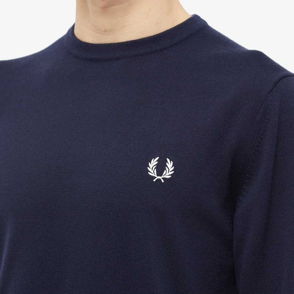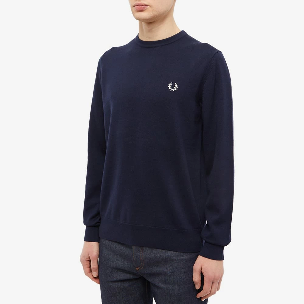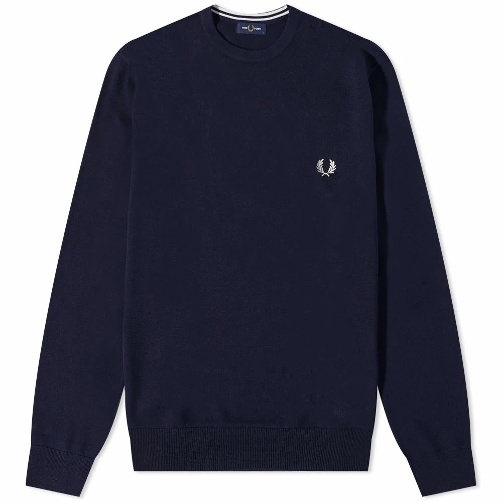 Serve timeless British style with this navy blue sweater from Fred Perry. A wardrobe essential with a subtle subcultural influence, it’s made from a premium wool blend and finished with the brand’s iconic laurel wreath on the chest.