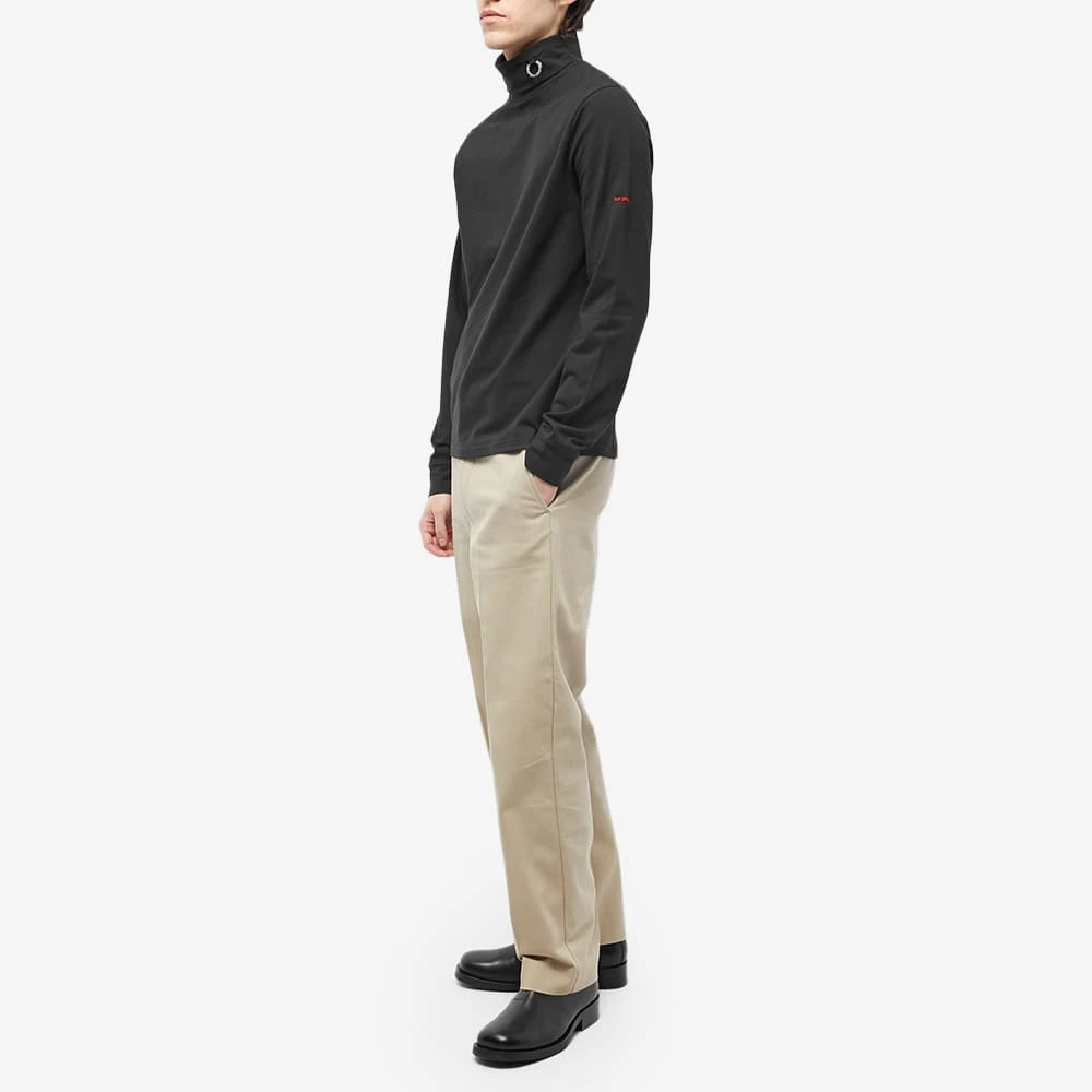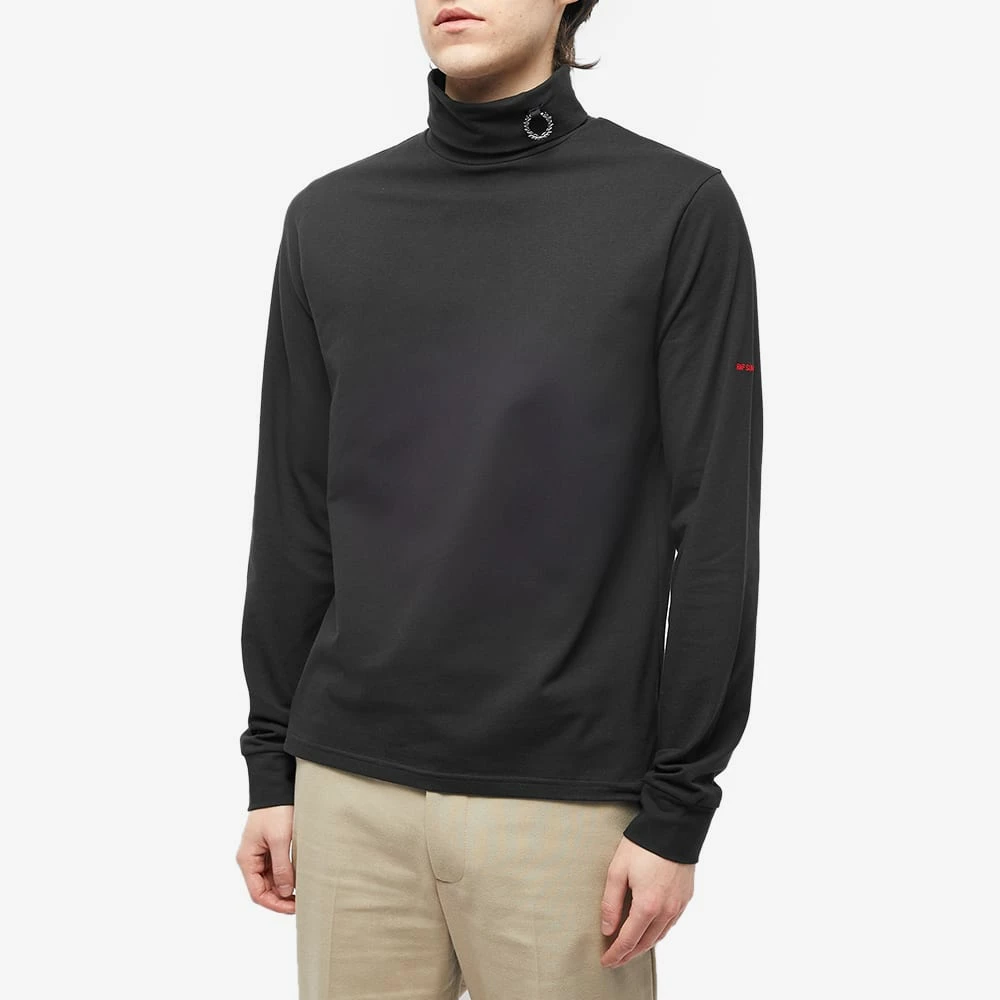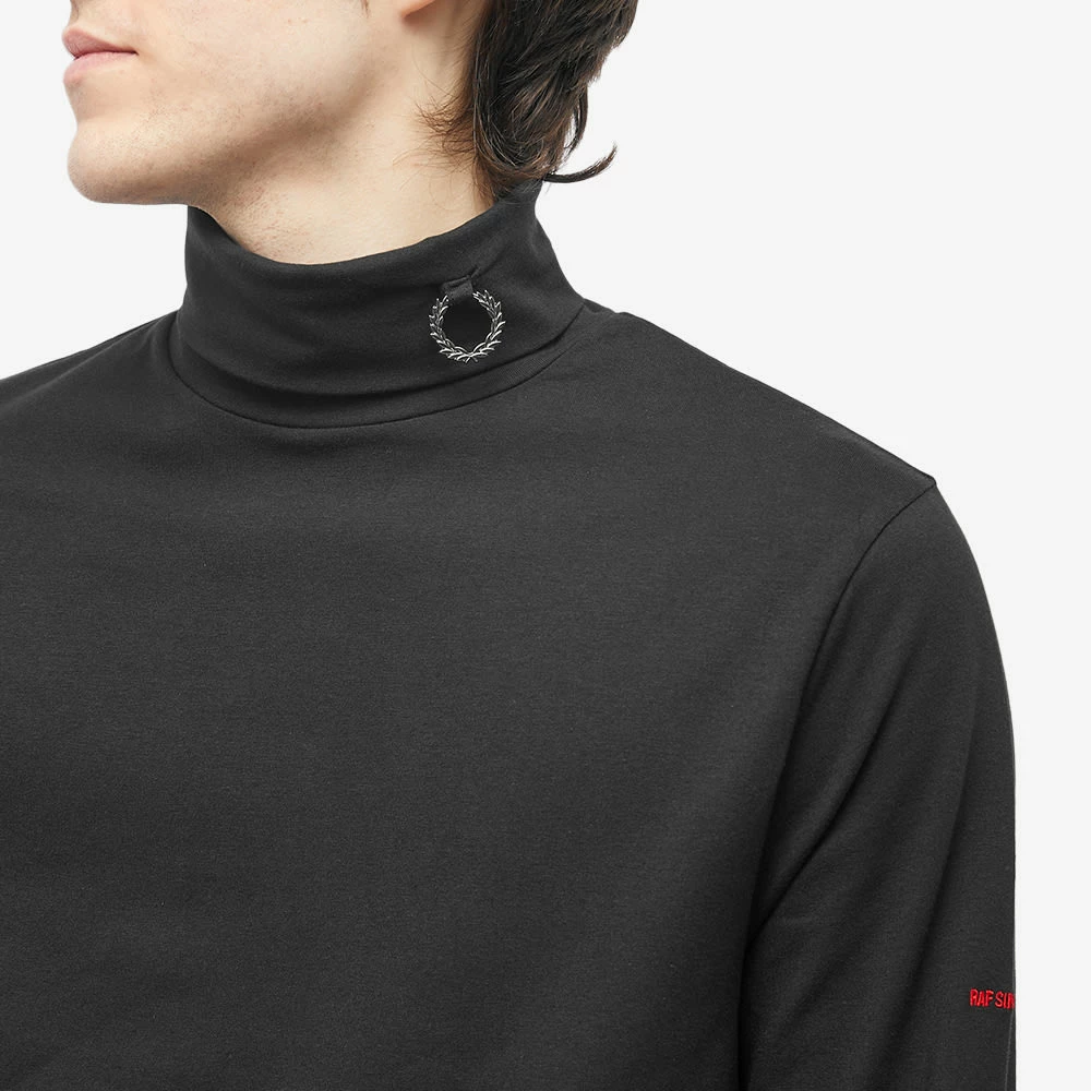 Belgian designer Raf Simons is collaborating with British label Fred Perry to create a collection that puts a subculture spin on conventional classics. This roll neck embodies the collection’s rebellious spirit with Fred Perry’s famous Laurel Wreath at the collar and Raf Simons’ embroidered logo at the sleeve for a punk aesthetic.