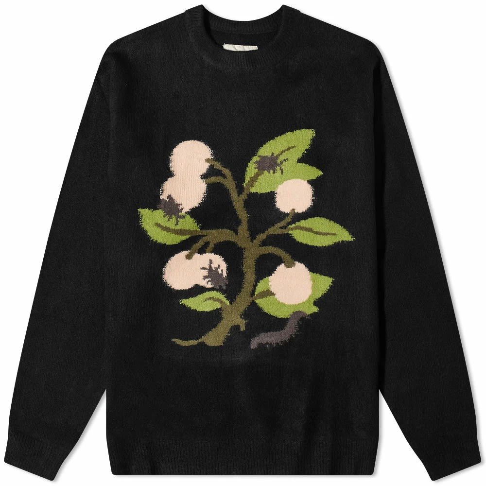 London-based label Heresy grows your AW22 wardrobe with this fruit jumper. As part of the “Dwellers of Bogton” collection, the brand aimed to broaden its knitting techniques – so you’ll find the motif sprouting at the chest in jacquard knit for added detail.