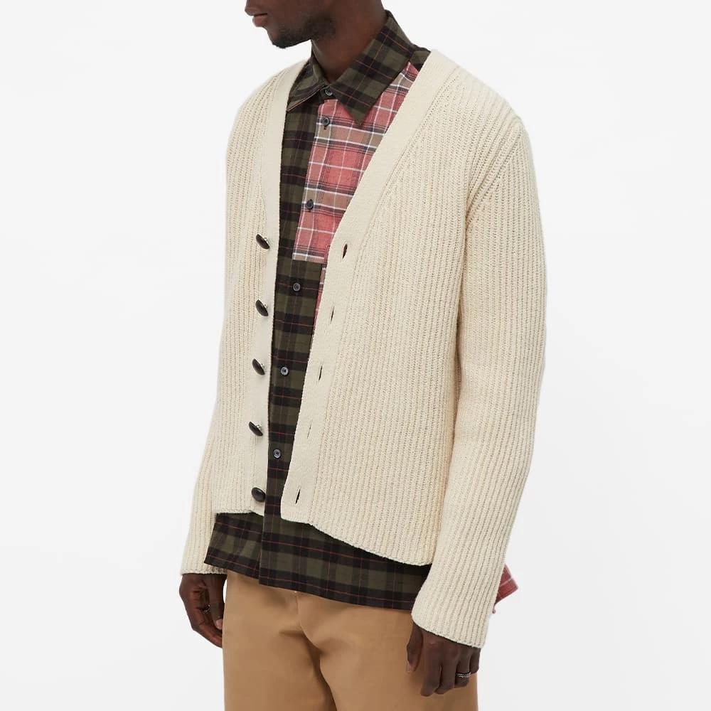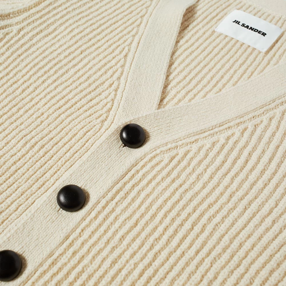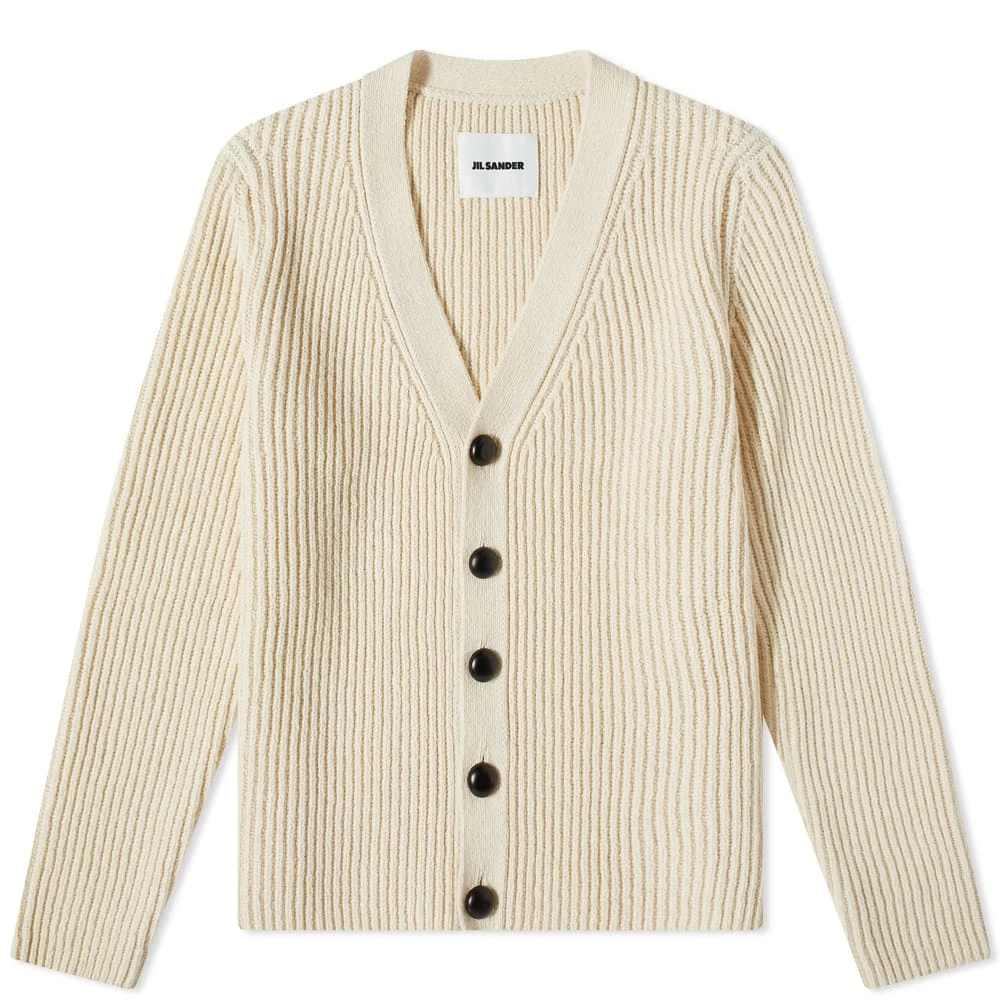 With a focus on refined minimalism and expertly crafted designs, Jil Sander offers this luxe off-white coloured cardigan. Knitted from a soft cotton wool blend, itβs relaxed silhouette is complete with a rich ribbed texture and chic black shank buttons for an elevated touch.