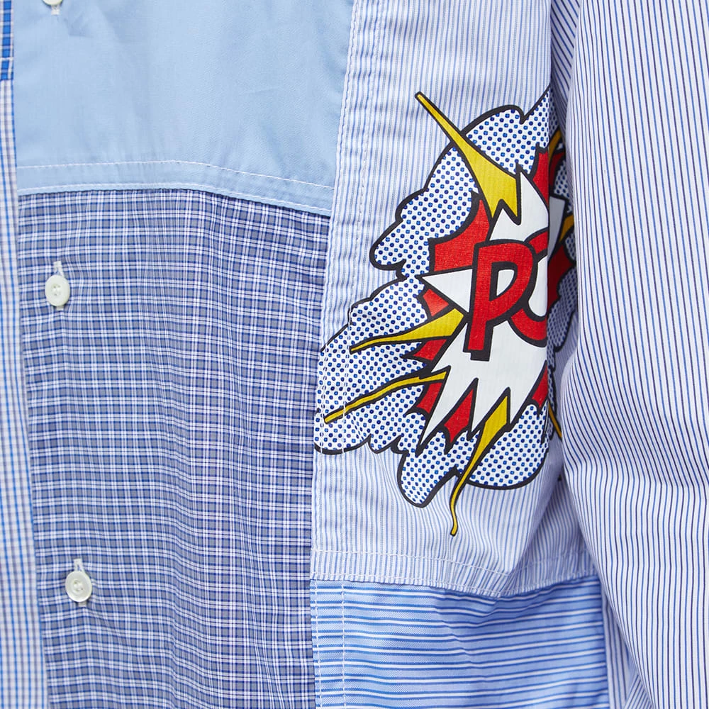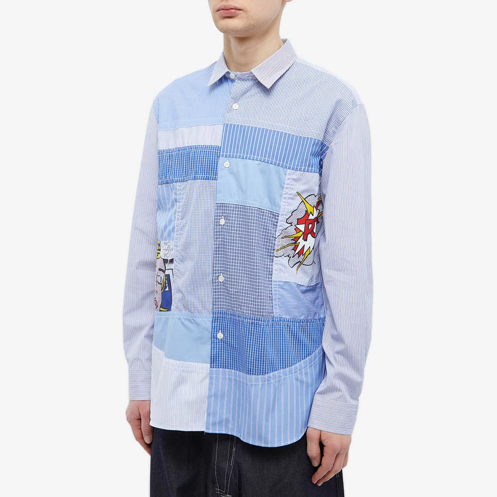 Junya Watanabe MAN sent a union of pop culture influences down the runway at Paris Fashion Week for the SS23 show. The Japanese label uses this shirt as its canvas and reimagines what art can be, blurring the lines of tailoring with the unmistakable work of Roy Lichtenstein, the instrumental figure in the Pop art movement and beyond, patchworking panels and printing the iconic No Thank You and Pow! artwork in sections.