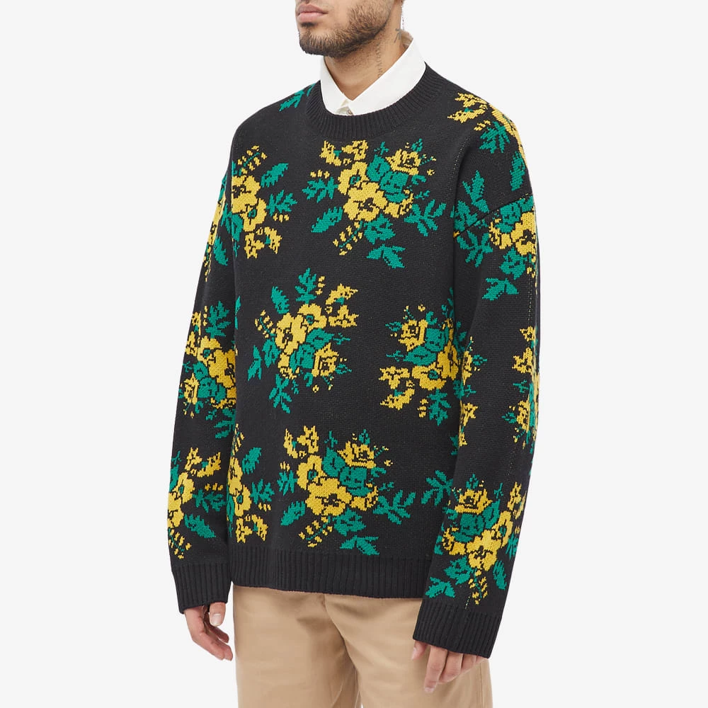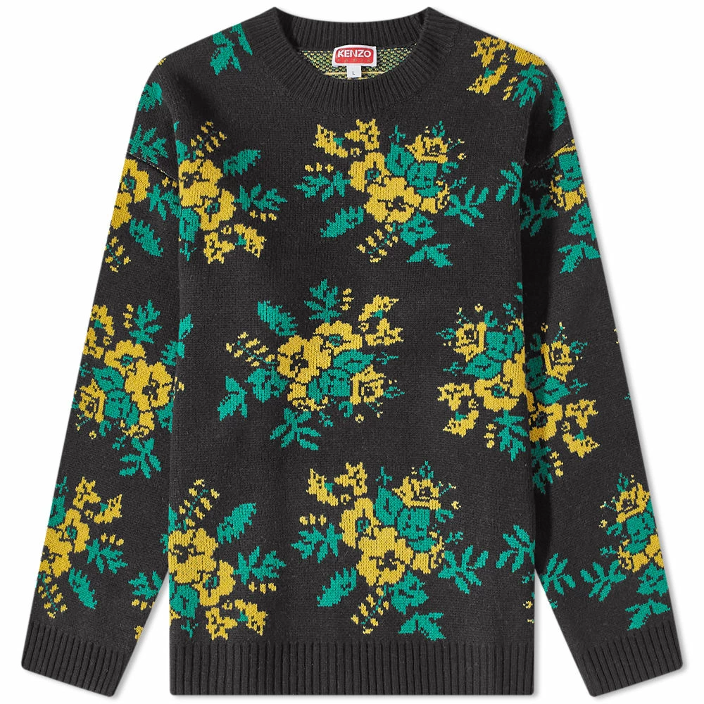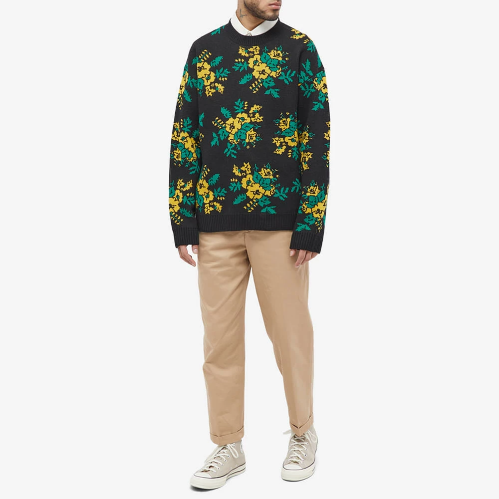 Artistic director Nigo looks back to the Kenzo archives and pays homage to the fashion house’s founder Takada, whose early designs often featured washes of colourful flowers. The famed Pop Bouquet motif is woven into this jacquard knit jumper.