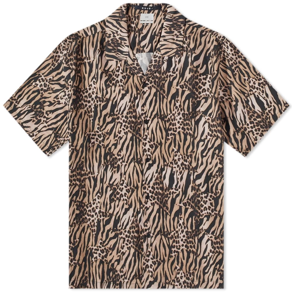 Ksubi exudes its rebellious spirit with the Zoo vacation shirt, an optical illusion of patchworked animal prints. Leopard patterned stars intersect striking zebra markings on this lightweight tencel vacation style that’s not for the faint hearted.