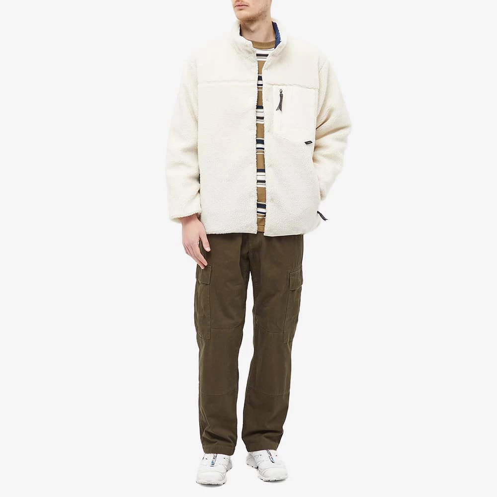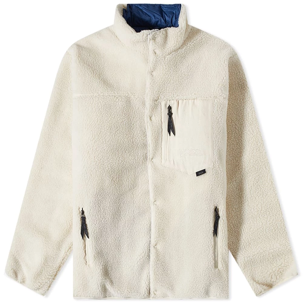 Down experts Taoin create outerwear with emphasis on warmth — after all, the label’s name translates to “body temperature”. It links up with sustainable outdoor brand Manastash which puts its eco-friendly touch to a functional fleece – with hemp-cotton co-branded chest pocket. Fully reversible, it’s padded with a down-feather fill and under its deep sherpa pile fleece reveals a quilted nylon, so you can style it your own way.