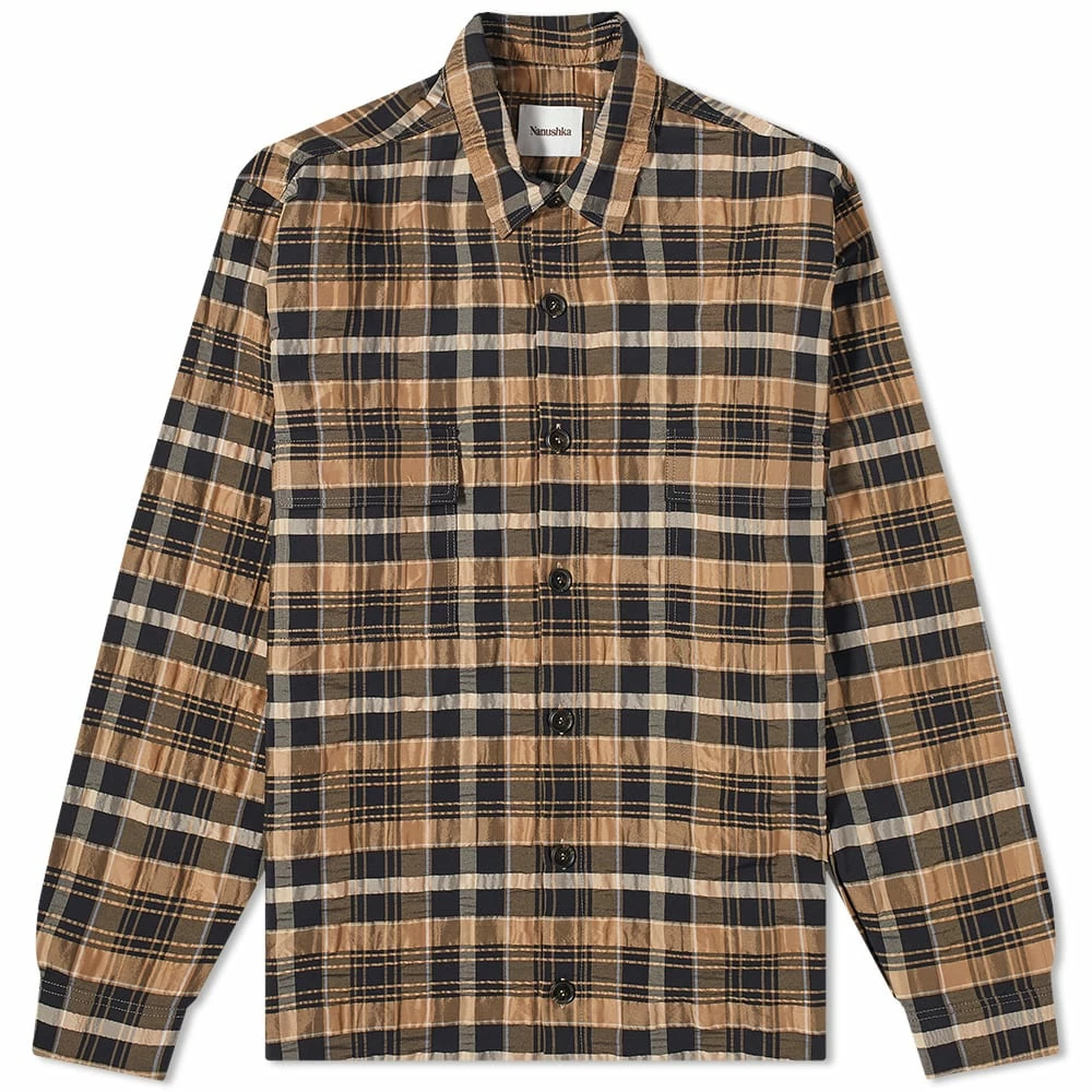 A check shirt is a casualwear must-have- and this black and camel one from Nanushka ticks all boxes. Crafted from a polyester and viscose blend, it shows off a tonal button closure with two spacious pockets at the chest.
