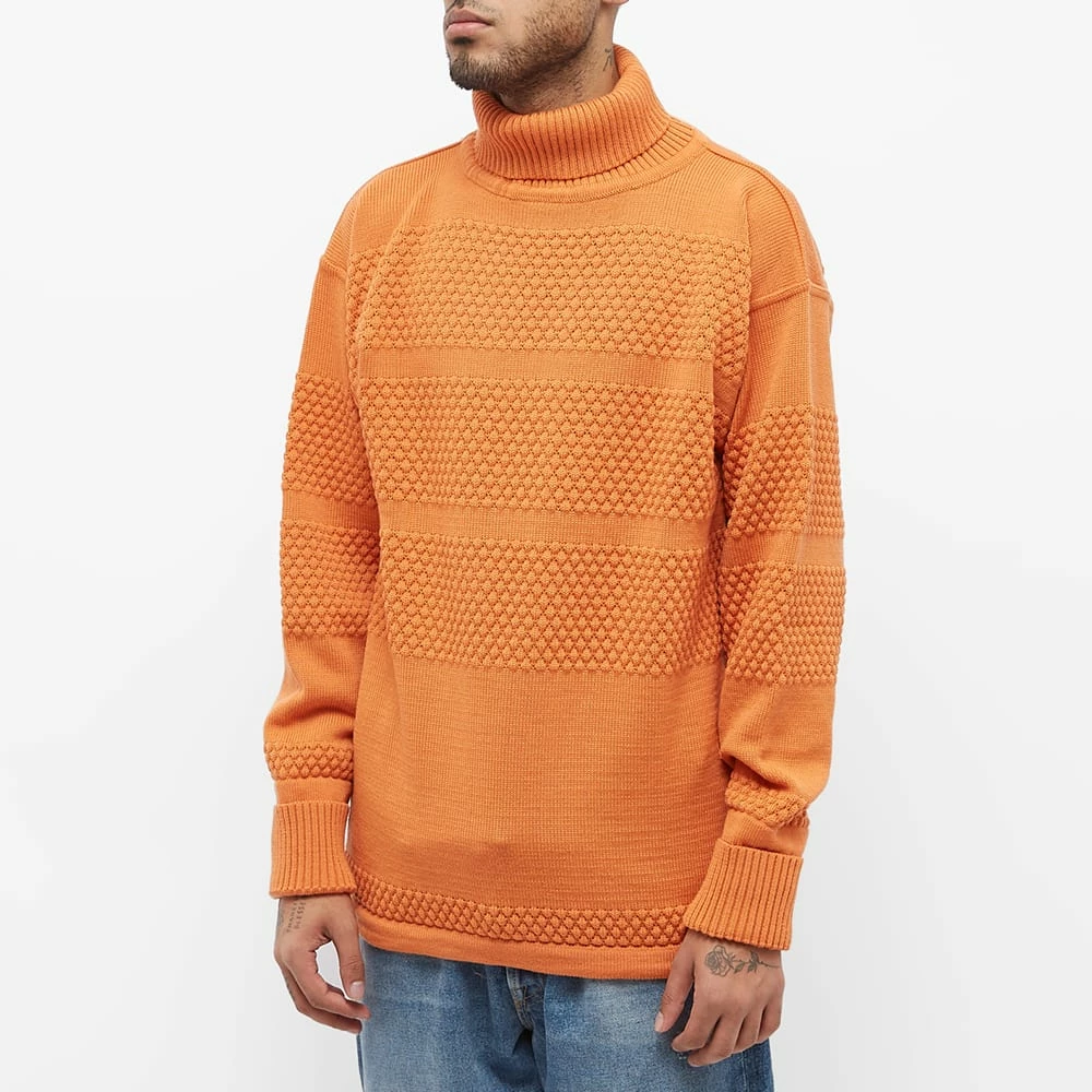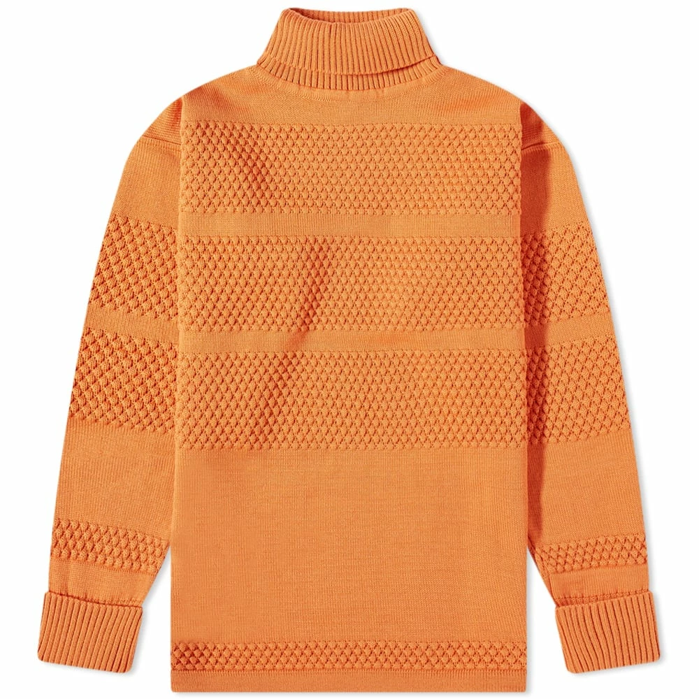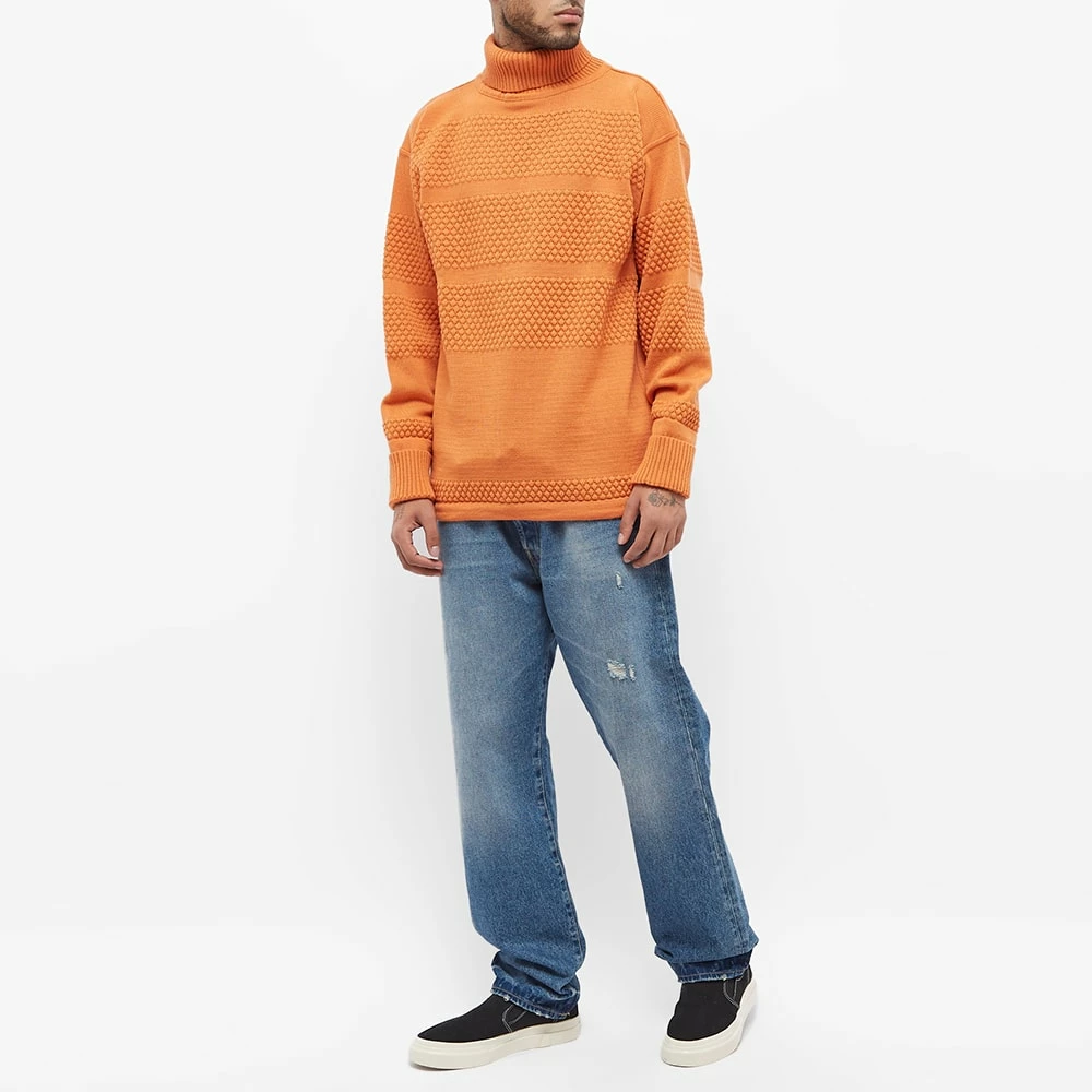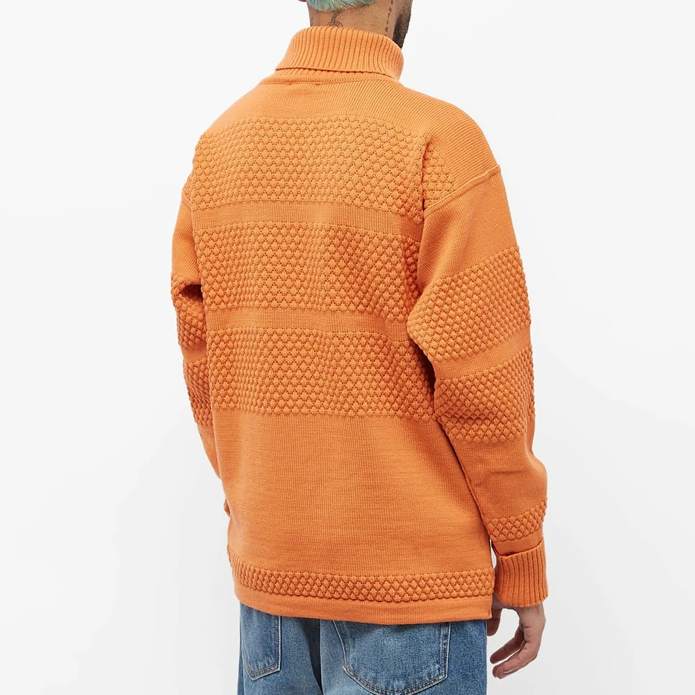 Since 1919, S.N.S. Herning has been creating high quality knitwear and the fisherman sweater traces back to the history of the “bubble” which is how to achieve warmth without wasting yarn. The fisherman roll neck is based on the original design from the Danish 1919 design and as the name would suggest, were developed for warmth and comfort while out at sea. This semi-textured fabric with the brand’s signature bubbles throughout in thick strips, originally crafted for workwear it is perfect to wear as a layering piece throughout the winter.