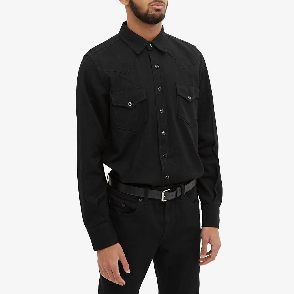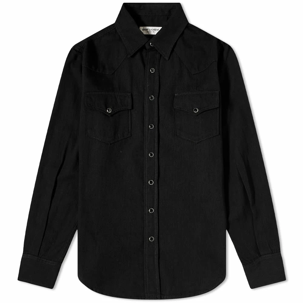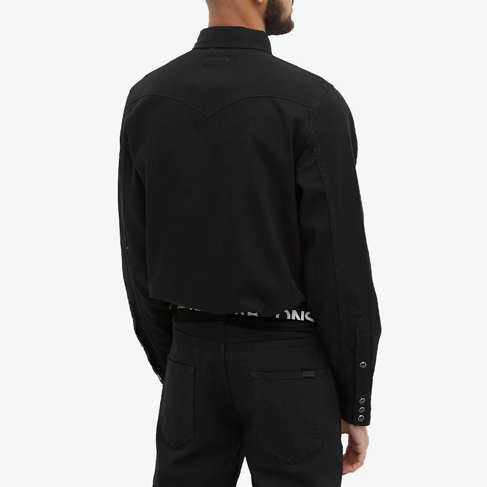 Add some chic Parisian style to your workwear wardrobe with this black shirt from luxury label Saint Laurent. Crafted in Italy from washed denim, it’s styled with western pockets and has shiny black press studs down the front.