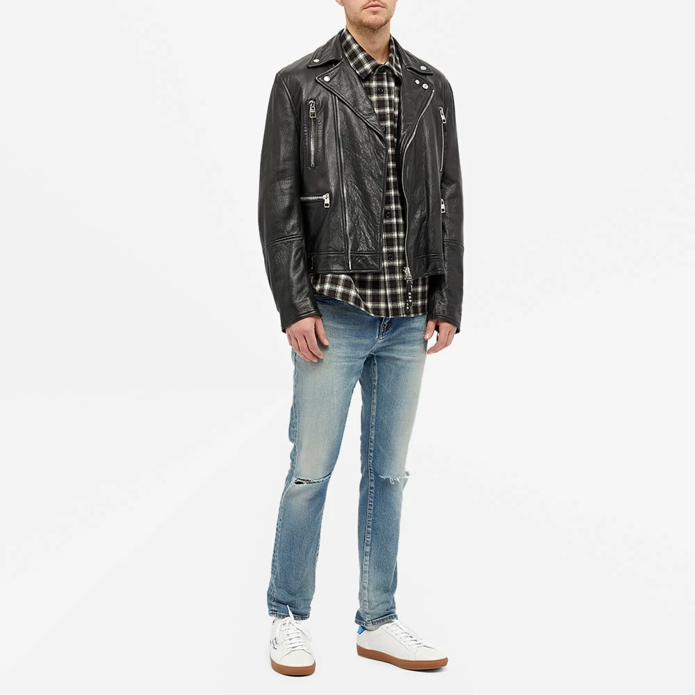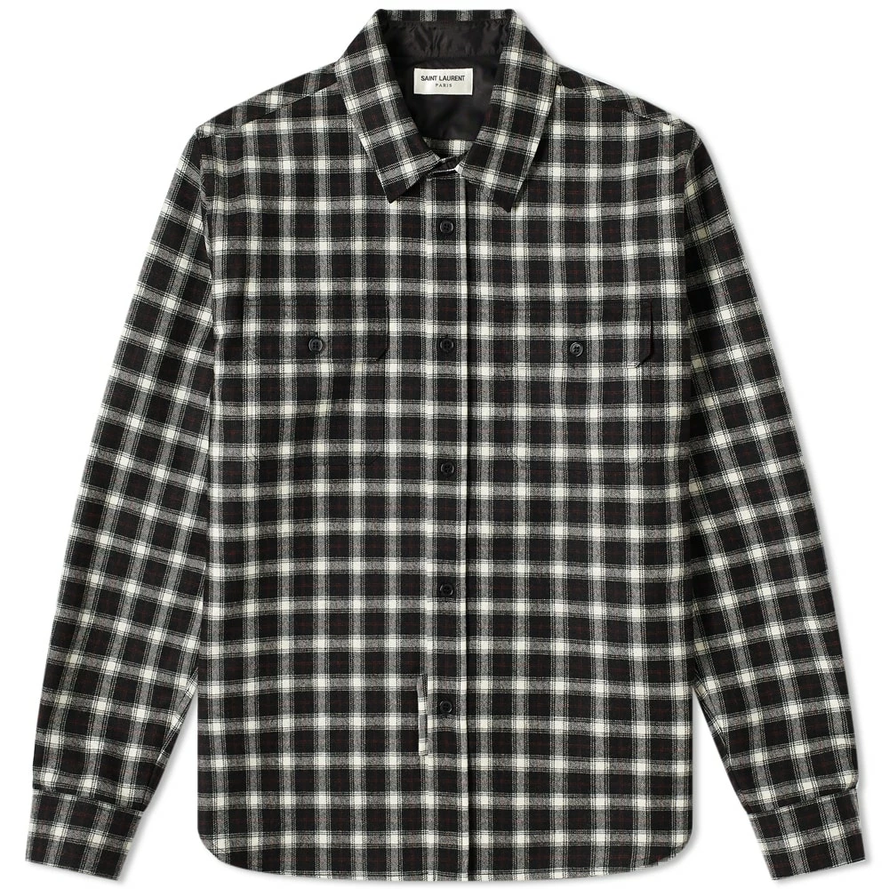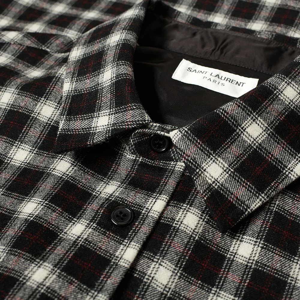 Playing it cool for AW20, Saint Laurent ensure your staple style is sorted with this checked shirt. A wardrobe essential, this black and white rendition is cut from a wool and cashmere blend with a silky lining for a luxurious feel on the skin. Crafted in Italy, you can rest assured its high-quality build will see you through many seasons to come.