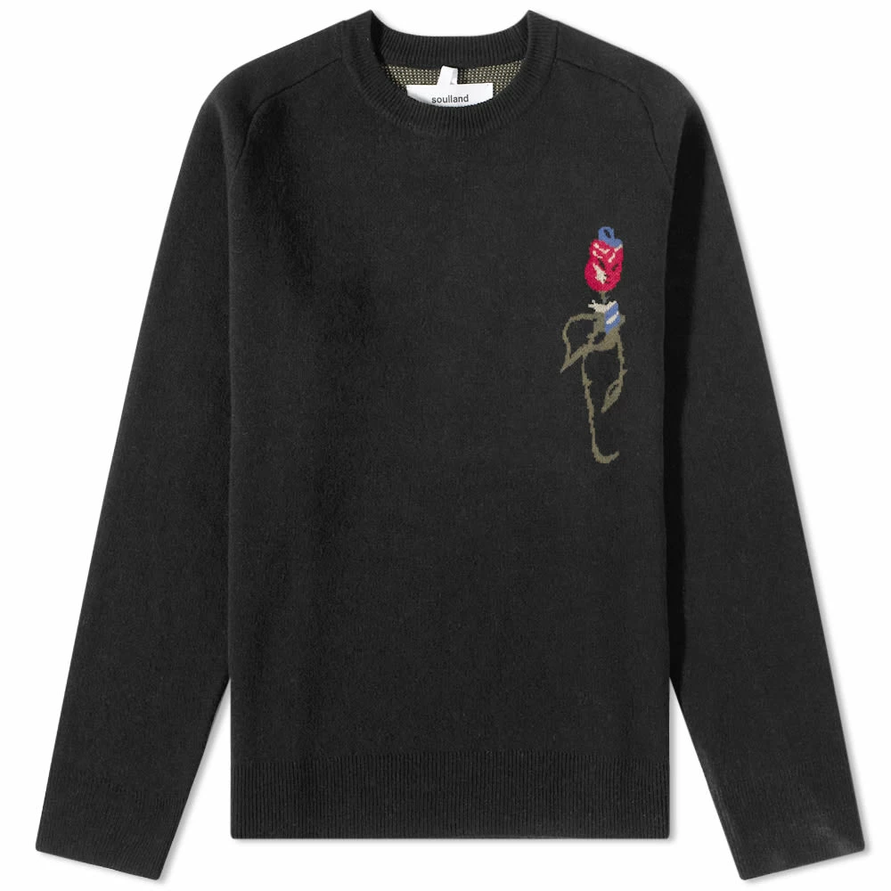 Scandinavian label Soulland offers up this black crew knit to take you through the chilly seasons in style. Made from a recycled wool blend, its detailed at the chest with a flower graphic designed by Oslo artist Charlie Roberts.