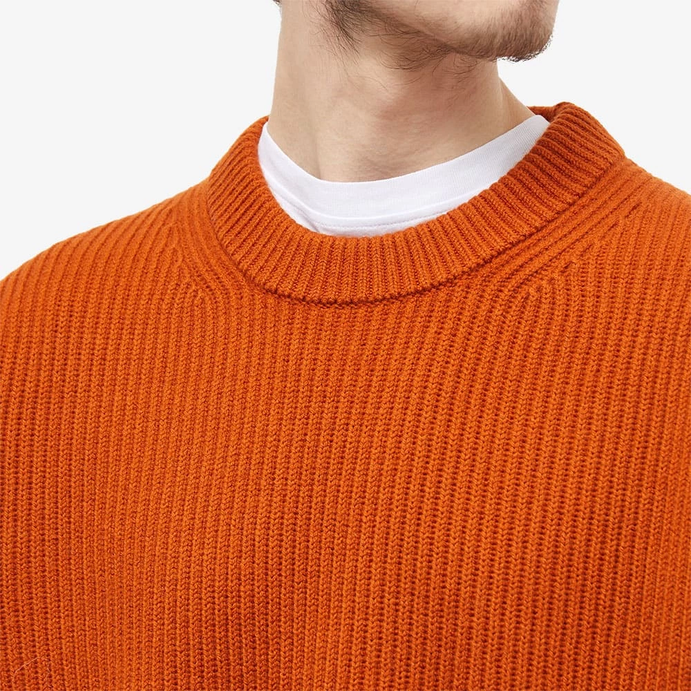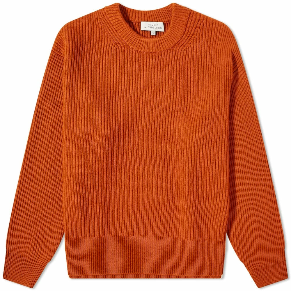Studio Nicholson rejects fashion in favour of polished and practical simplicity. This Auxil jumper from the British brand stands by its fabric-first approach to design, where “tactility and structure inform the end result”. Knitted from a ribbed merino wool, the traditional fisherman style is kept totally pared-back. A chunky crewneck adds subtle structure and a contemporary touch.