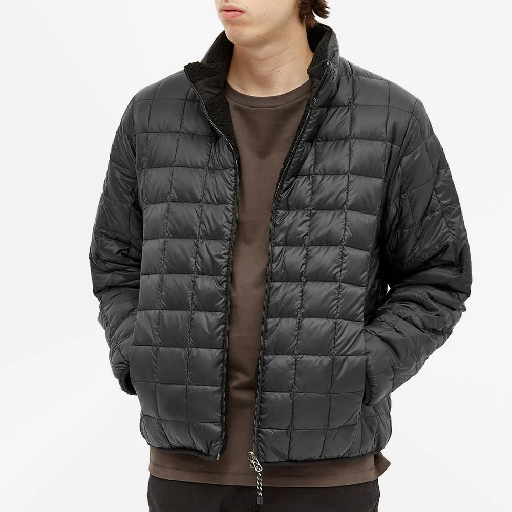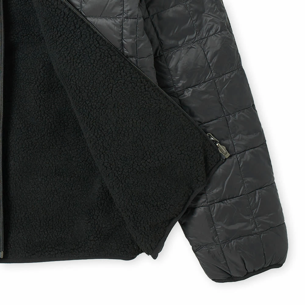 TAION creates outerwear with emphasis on warmth — after all, the label’s name translates to “body temperature” — and that’s more than clear with this jacket. It’s fully reversible, with a down-filled, nylon exterior that reverses to reveal deep-pile fleece, with both sides styled to give the classic outerwear look.
