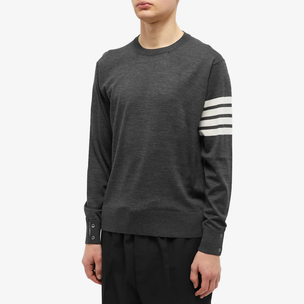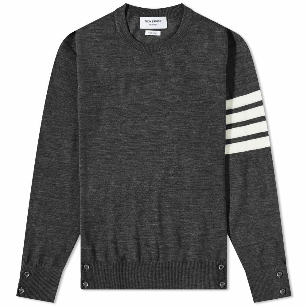 Stay cosy during the shifting seasons in this crew knit from Thom Browne. Its merino wool build was woven in Italy and secures with buttons on each cuff, while four-bar stripes complete the iconic look.