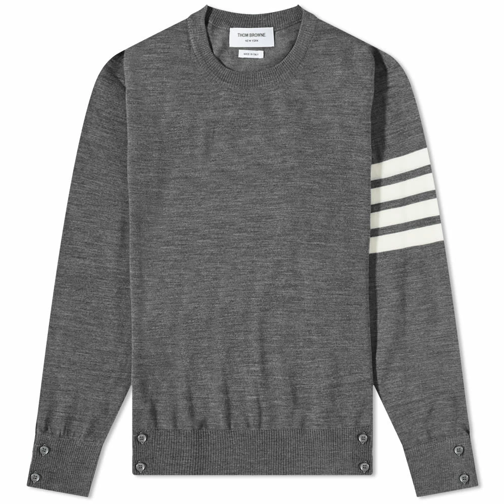 Perfect for the shifting seasons, Thom Browne’s crew is delicately woven in Italy from merino wool. It’s coloured in a timeless grey and detailed with the brand’s signature four-bar stripes on the left sleeve.