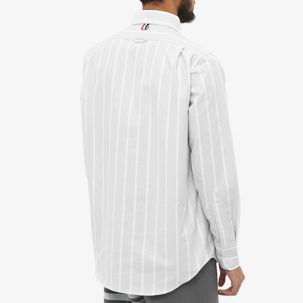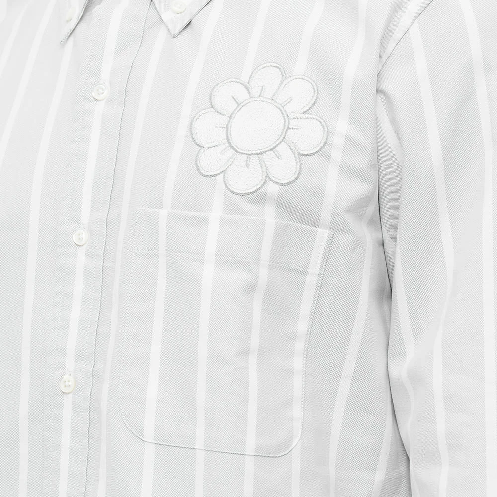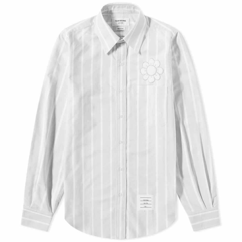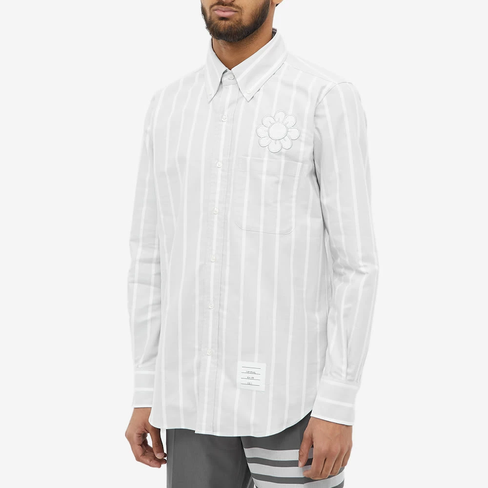 Update your spring formal collection with this light grey striped Oxford shirt from Thom Browne. Crafted from pure cotton, it’s stamped with a floral applique patch above the pocket at the chest. The rest is kept classic with a button down closure and spread collar.