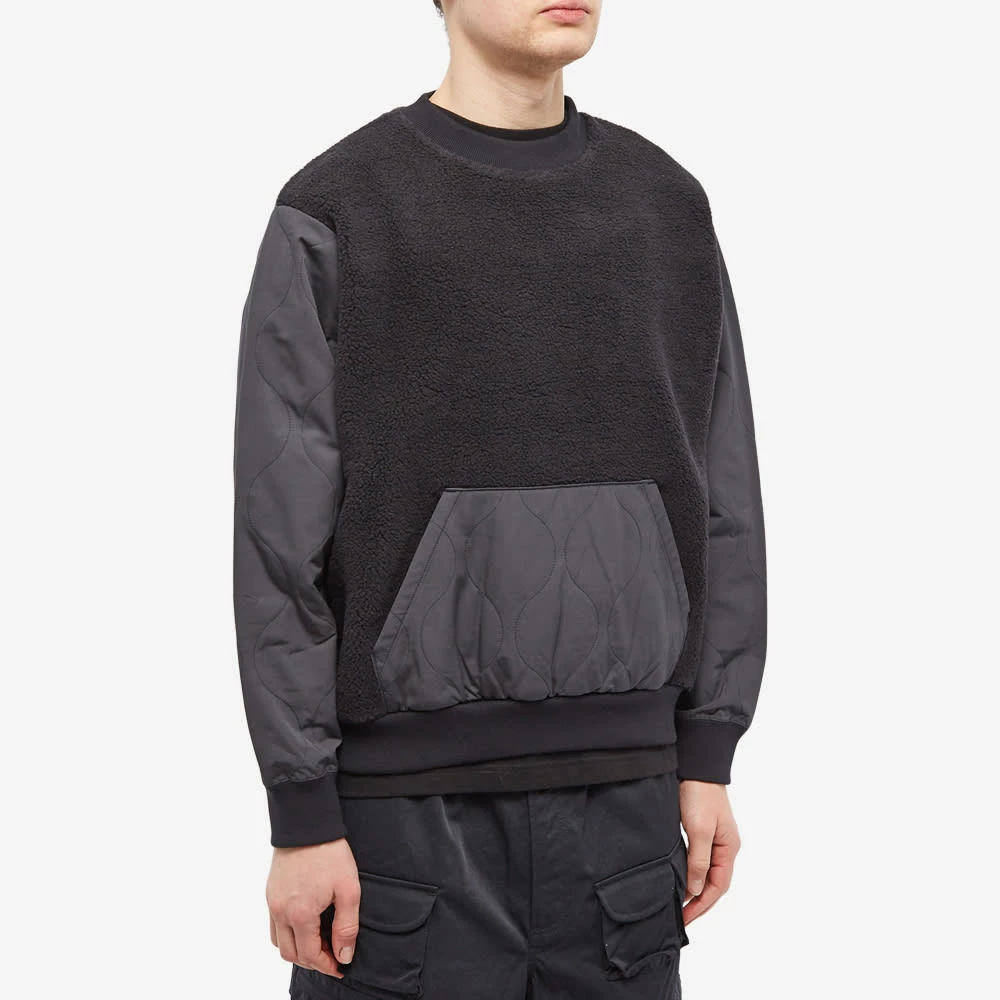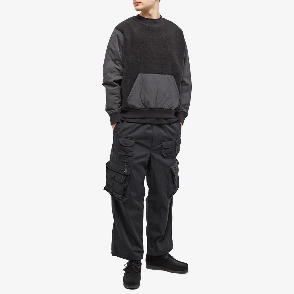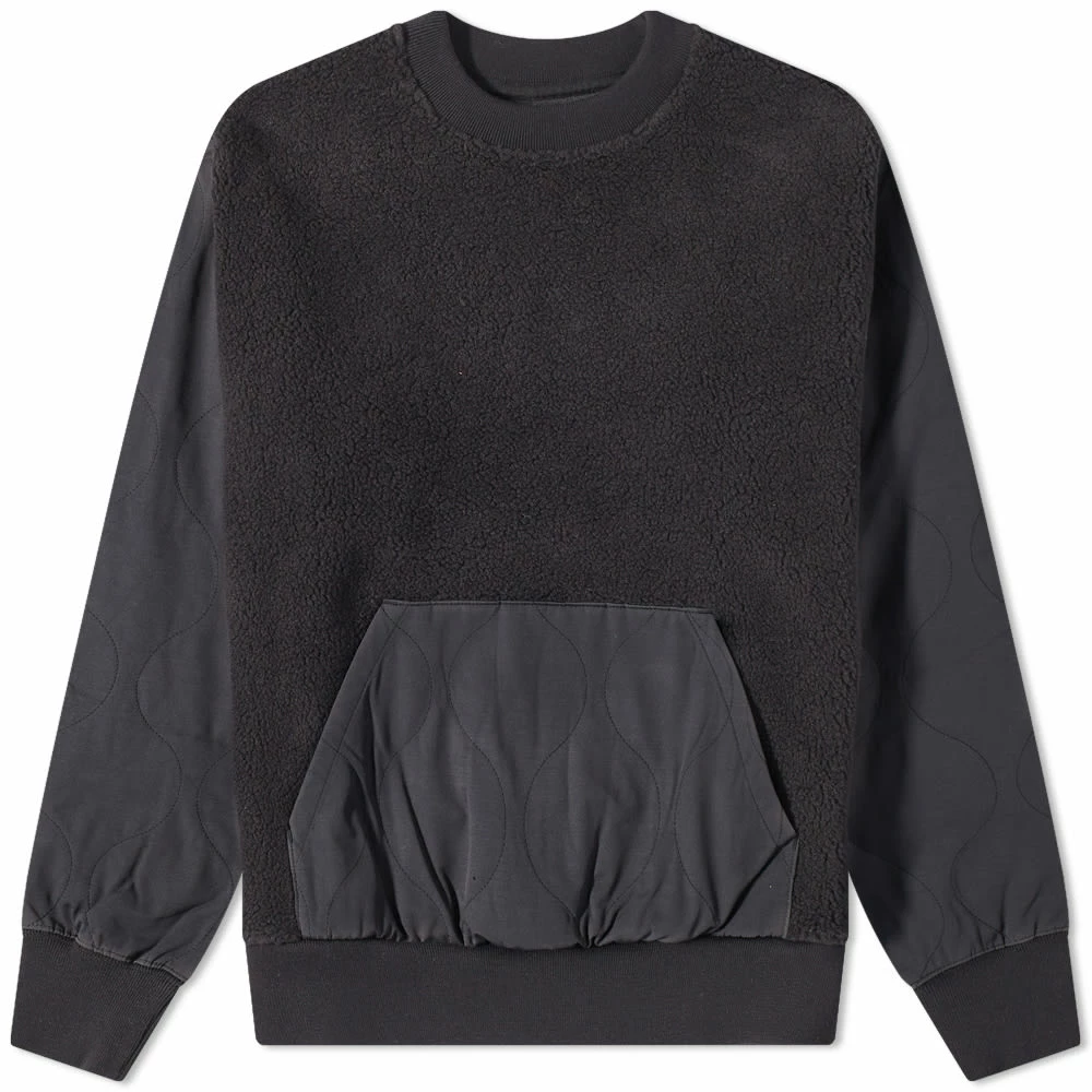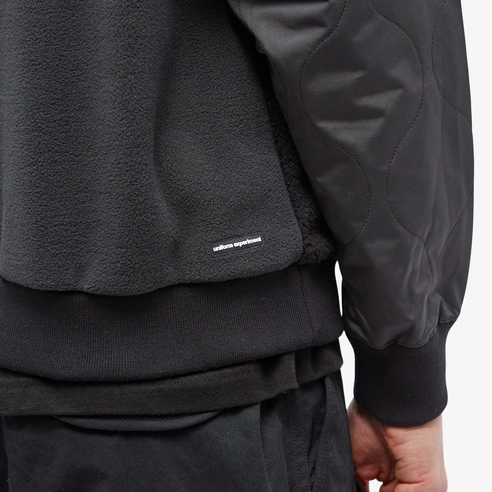 Uniform experiment is a Japanese streetwear brand, founded by Hirofumi Kiyonaga of SOPHNET. The mixed fleece crew sweat is made with two types of fleece material to create alternating panels to create a unique piece. This crew sweat is made with a relaxed fit and a hoody style pocket on the front as a design point.
