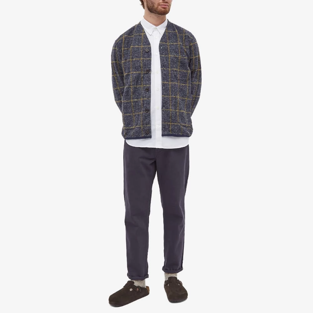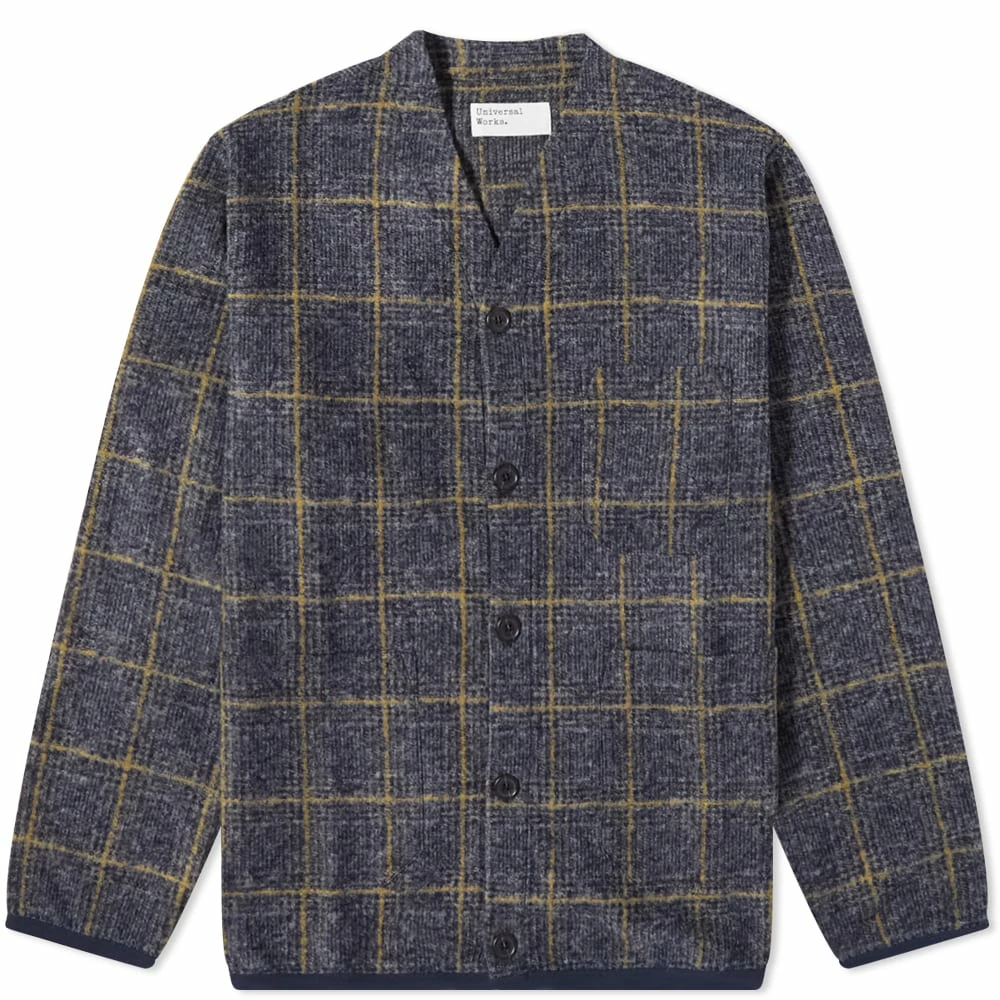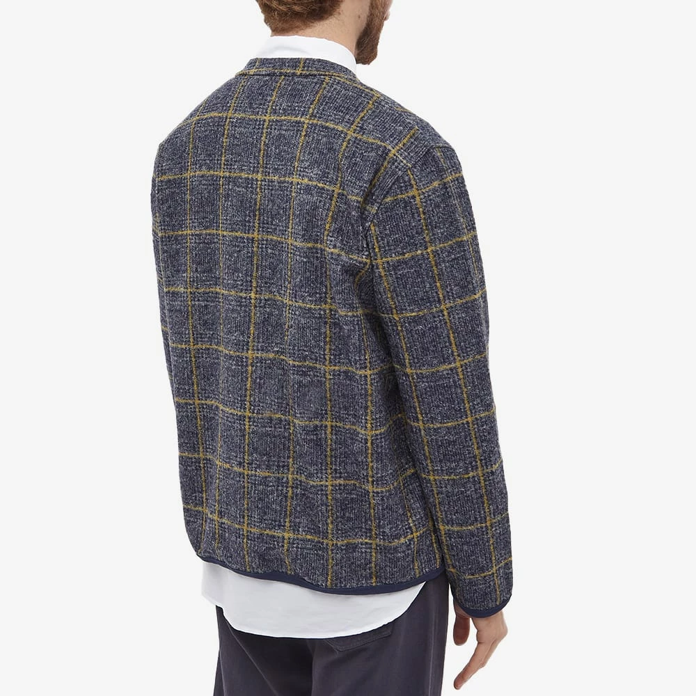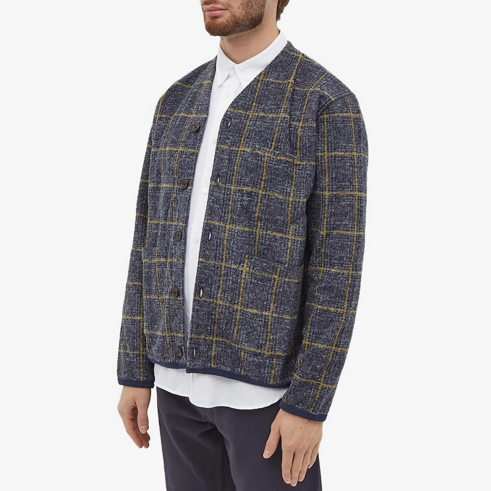 More interested in function and comfort than setting trends, Universal Works presents the bari fleece cardigan. This navy cardigan from the brand’s AW22 collection features the brand’s hallmark check.