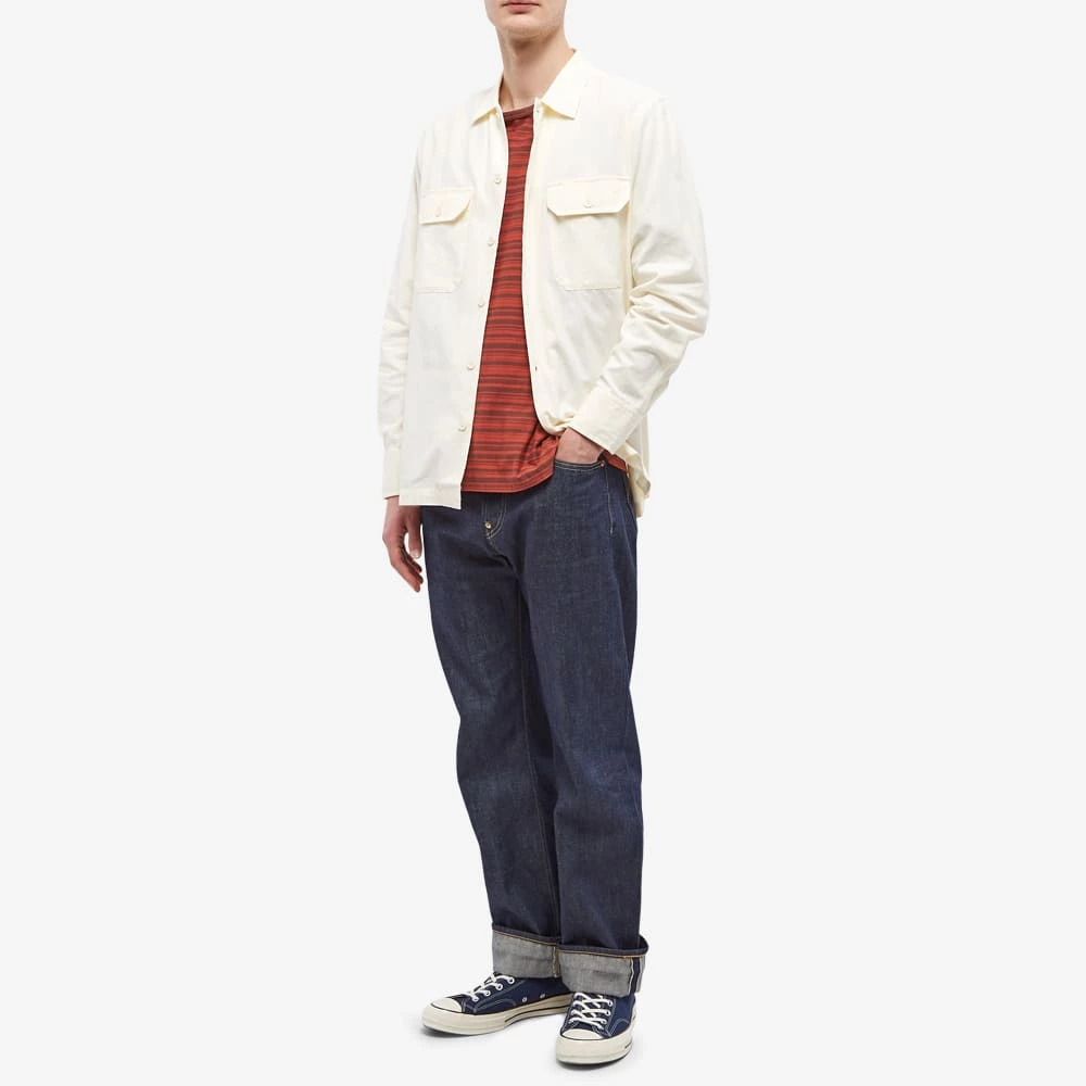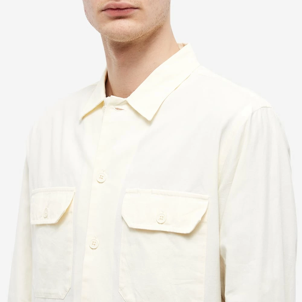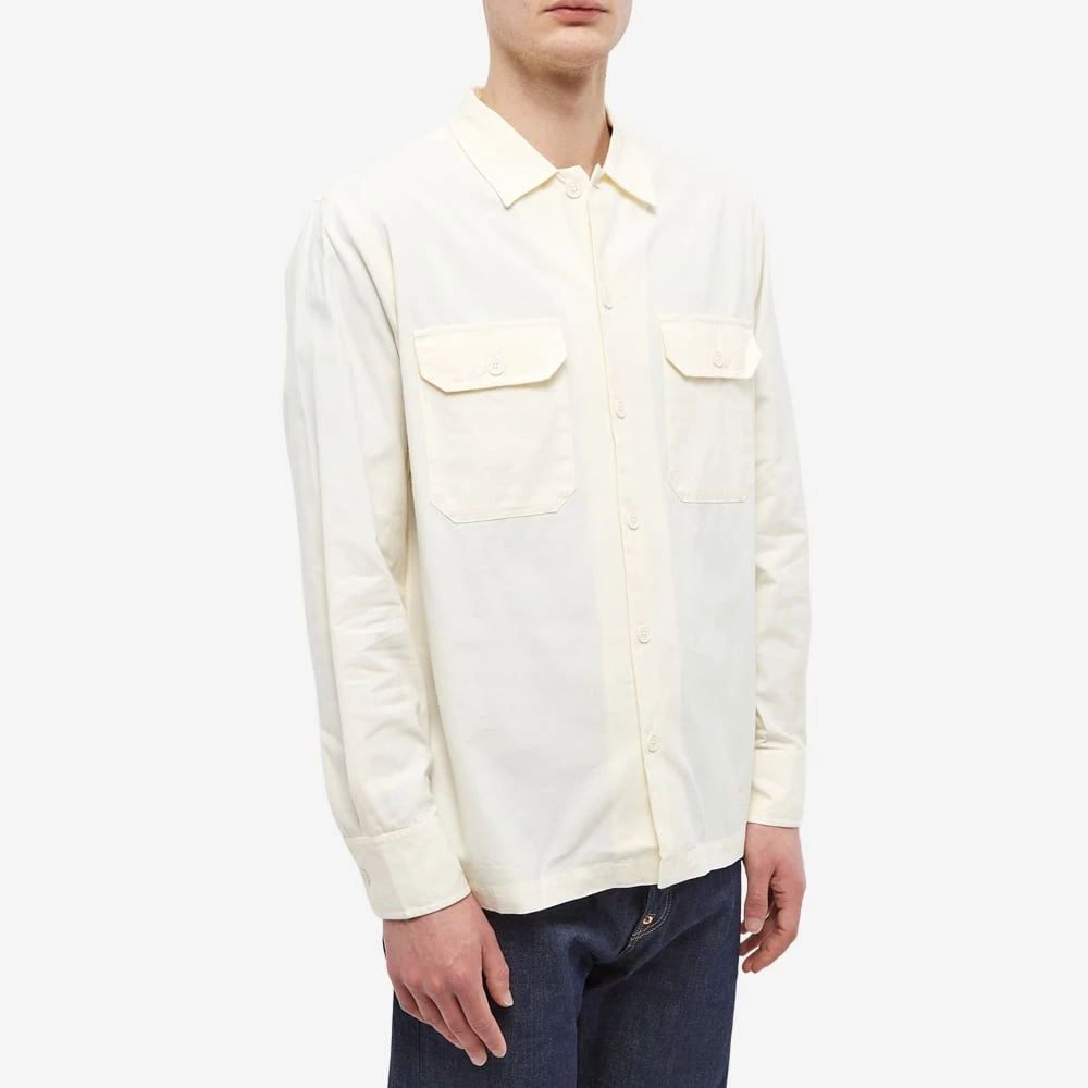 Inspired by a visit to a Japanese fast-food shop, Nottingham-based Universal works welcomes this versatile, ecru-coloured utility shirt into its latest collection – reminiscent of American ‘Garage’ work shirts. It’s made from minter-weight chambray cotton and offers an oversized, boxy fit with a vintage feel. It’s finished off with two chest pockets to round together the all-American aesthetic.