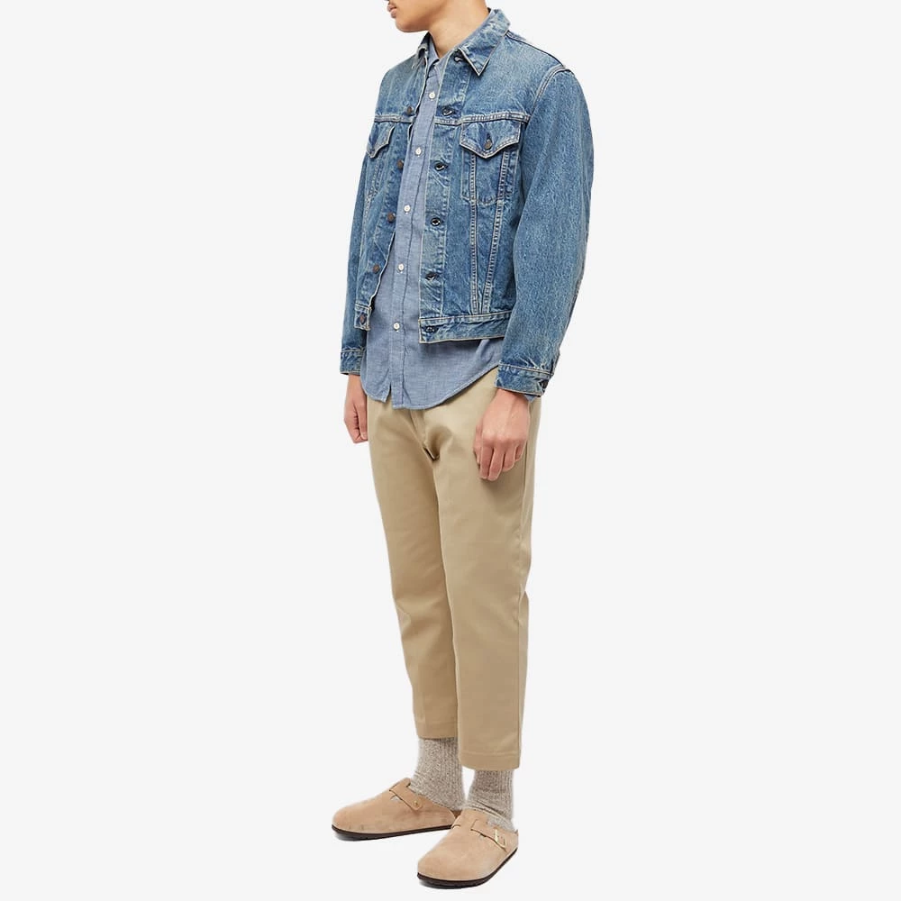Visvim pays homage to vintage, infusing Americana influences and revisiting techniques to mimic the same hard-wearing qualities of age-old clothing. The Frontier shirt is made in the label’s native Japan in a Chambray cotton-silk blend and complete with flap pockets for a traditional workwear look, which harnesses Hiroki Nakamura’s penchant for the past and present.
