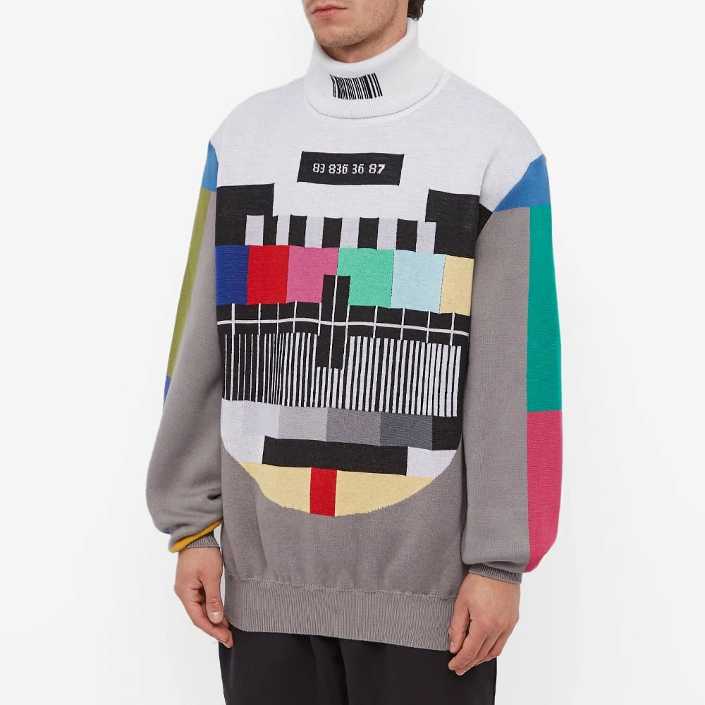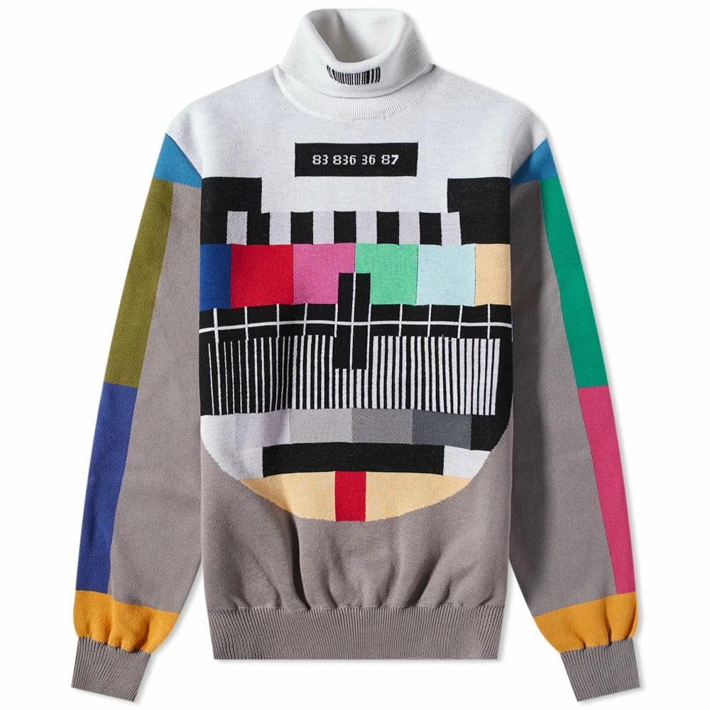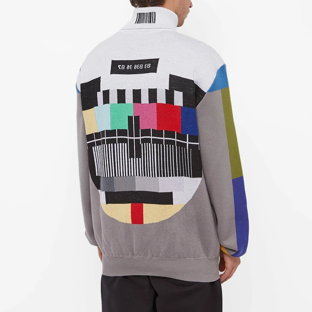Styled with a cosy turtleneck, this knit jumper from VTMNTS is perfect for keeping the chill out on colder days. Crafted from a luxe blend of extra-fine merino wool, it’s cut to an oversized ‘fit and features a bold, colour-blocked face graphic to the front and back. The look is then signed off with snug ribbed trims to finish.