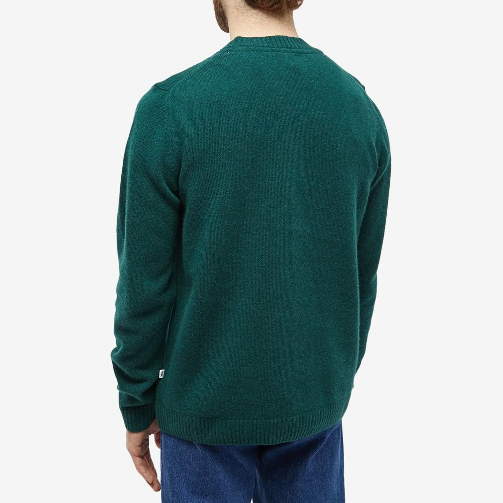 Combining elements of underground and high-end fashion, Wood Wood continues to create their own aesthetic. Crafted from a luxurious lambswool, this green crew neck jumper features a small woven brand tab.