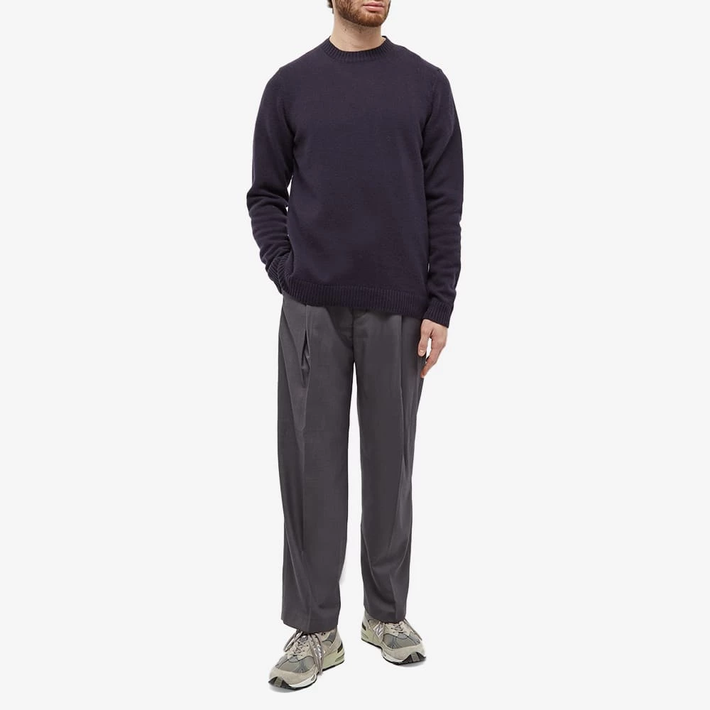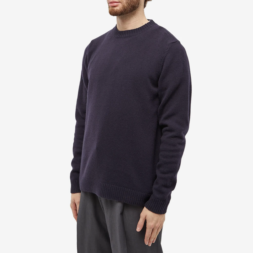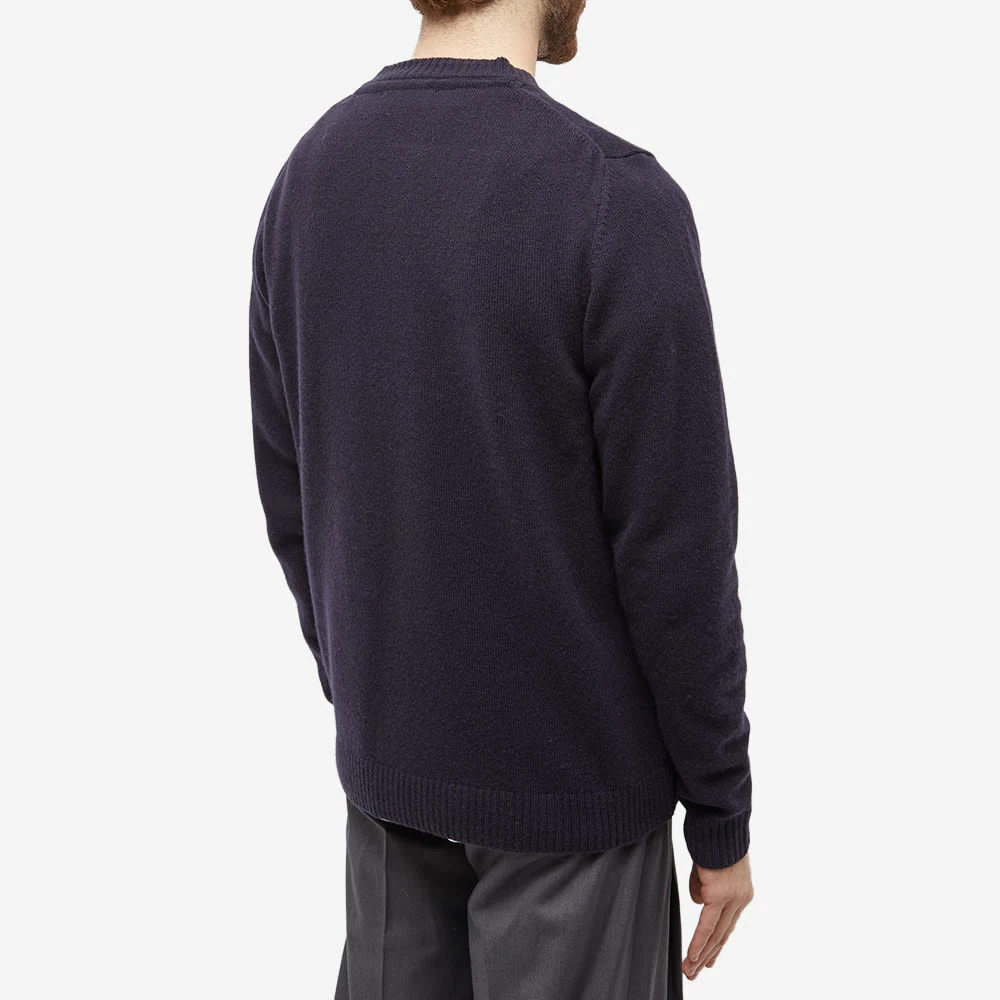 Combining elements of underground and high-end fashion, Wood Wood continues to create their own aesthetic. Crafted from a luxurious lambswool, this navy crew neck jumper features a small woven brand tab.