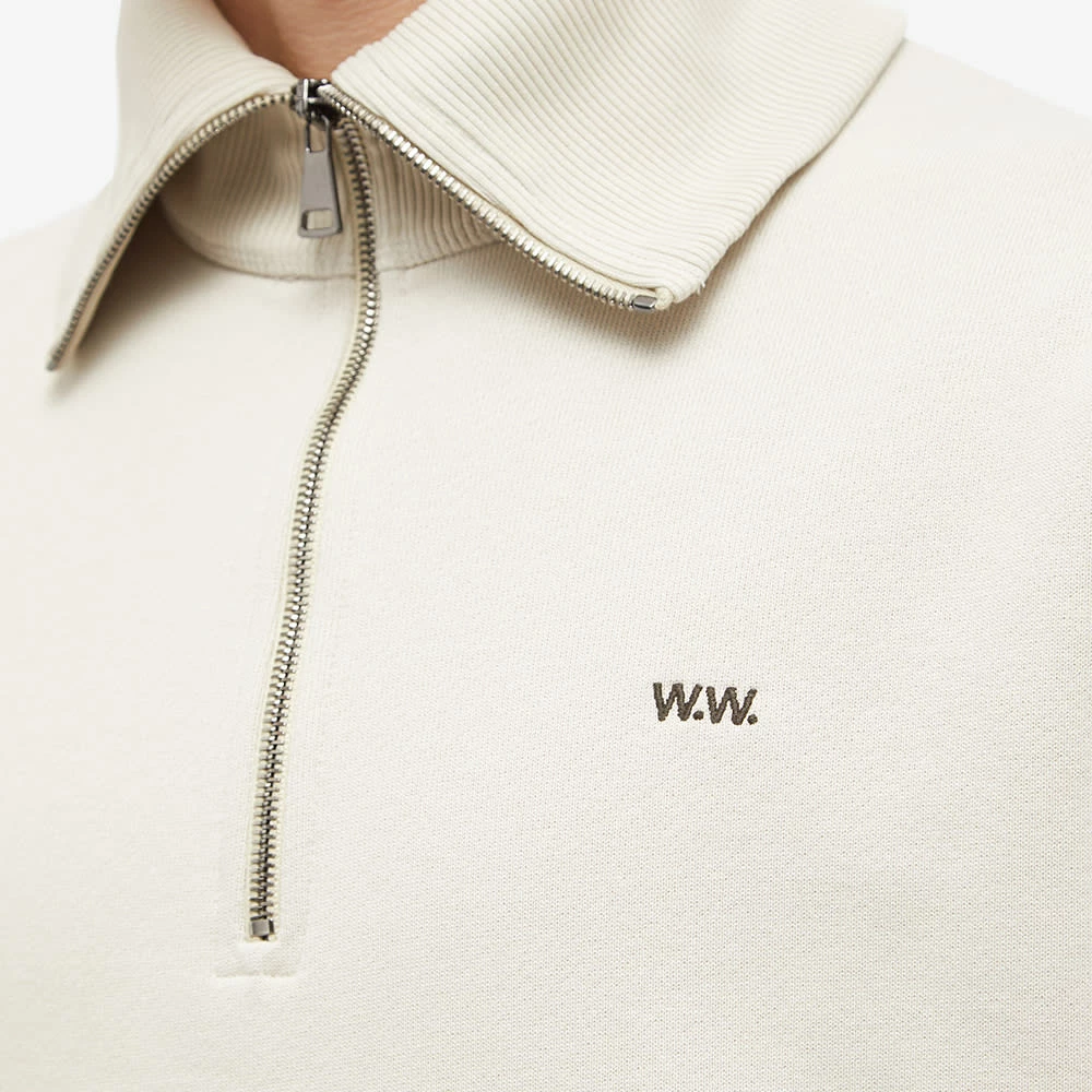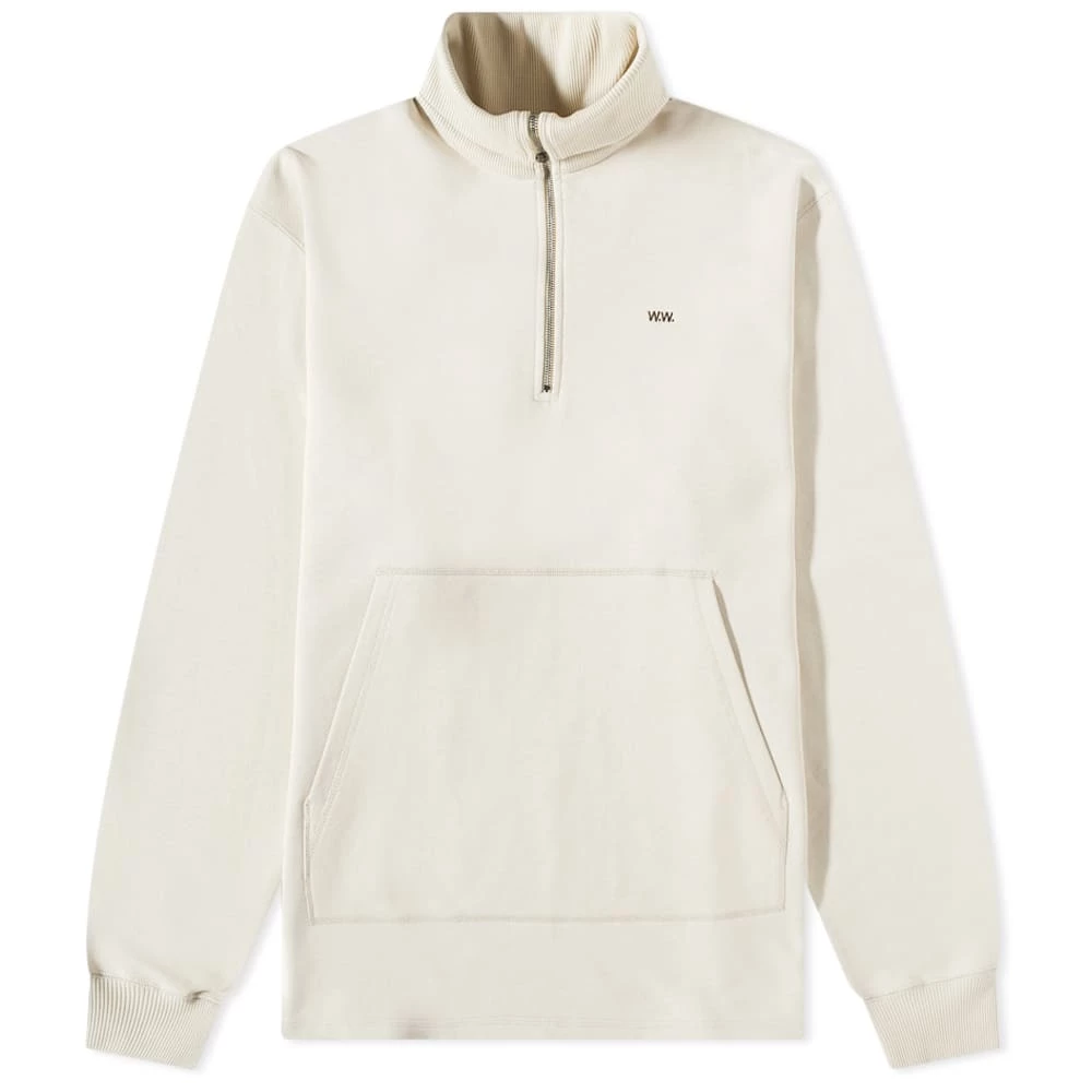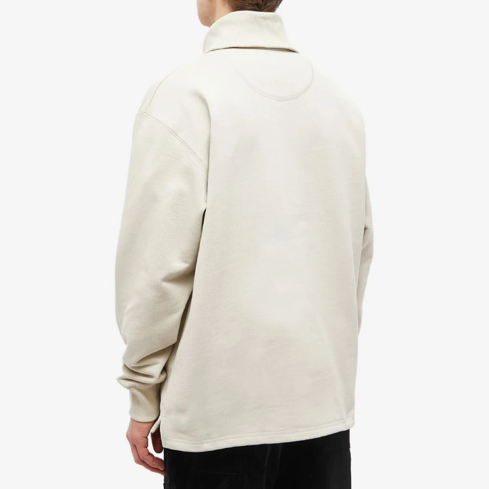 The perfect layering piece for the SS23 season, Wood Wood presents the Caspian zip shirt. Made of a heavyweight cotton material, this shirt is made with a ribbed high collar that folds down to give a more refined look for your springtime walks. The brand’s logo is embroidered on the chest of this beige piece.
