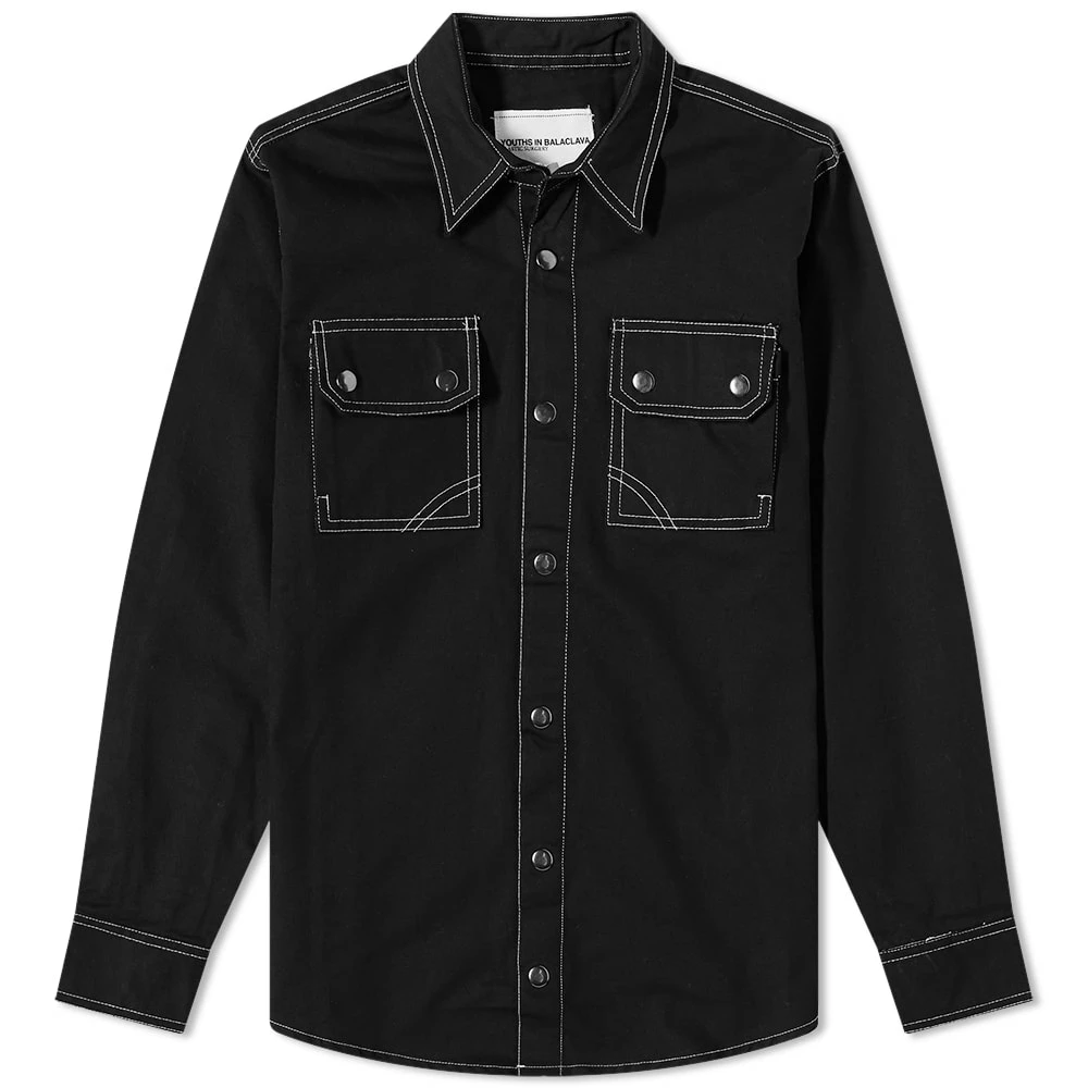 Updating a classic style with a fresh contemporary look, this Youths in Balaclava shirt is sure to be a timeless addition to your wardrobe. A staple style that can be worn all-year round, itβs styled in a sleek black with contrasting white stitching throughout.